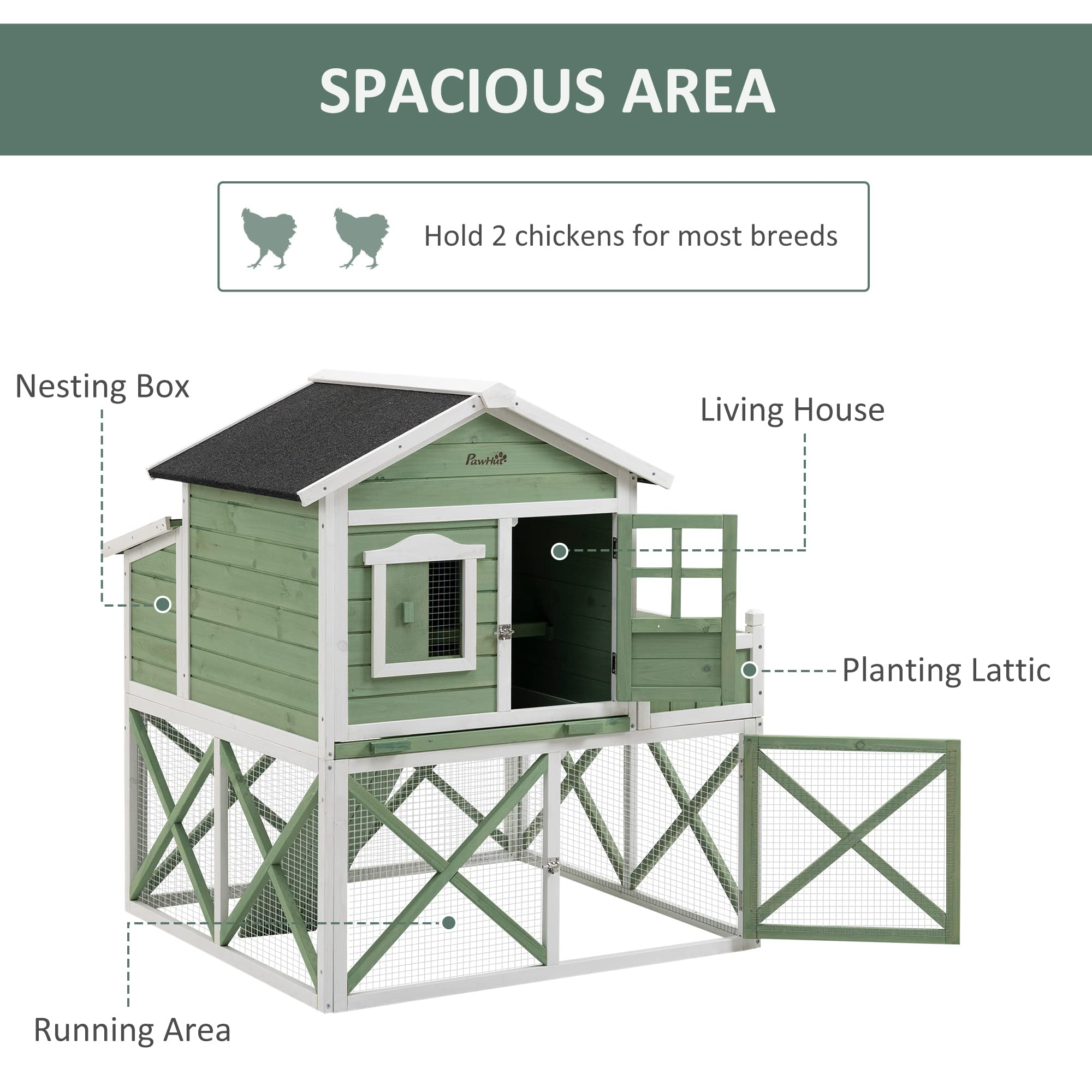 【Pet】44" Chicken Coop, Rabbit Hutch with Nesting Box, Removable Tray, Asphalt Roof, Planting & Lattice