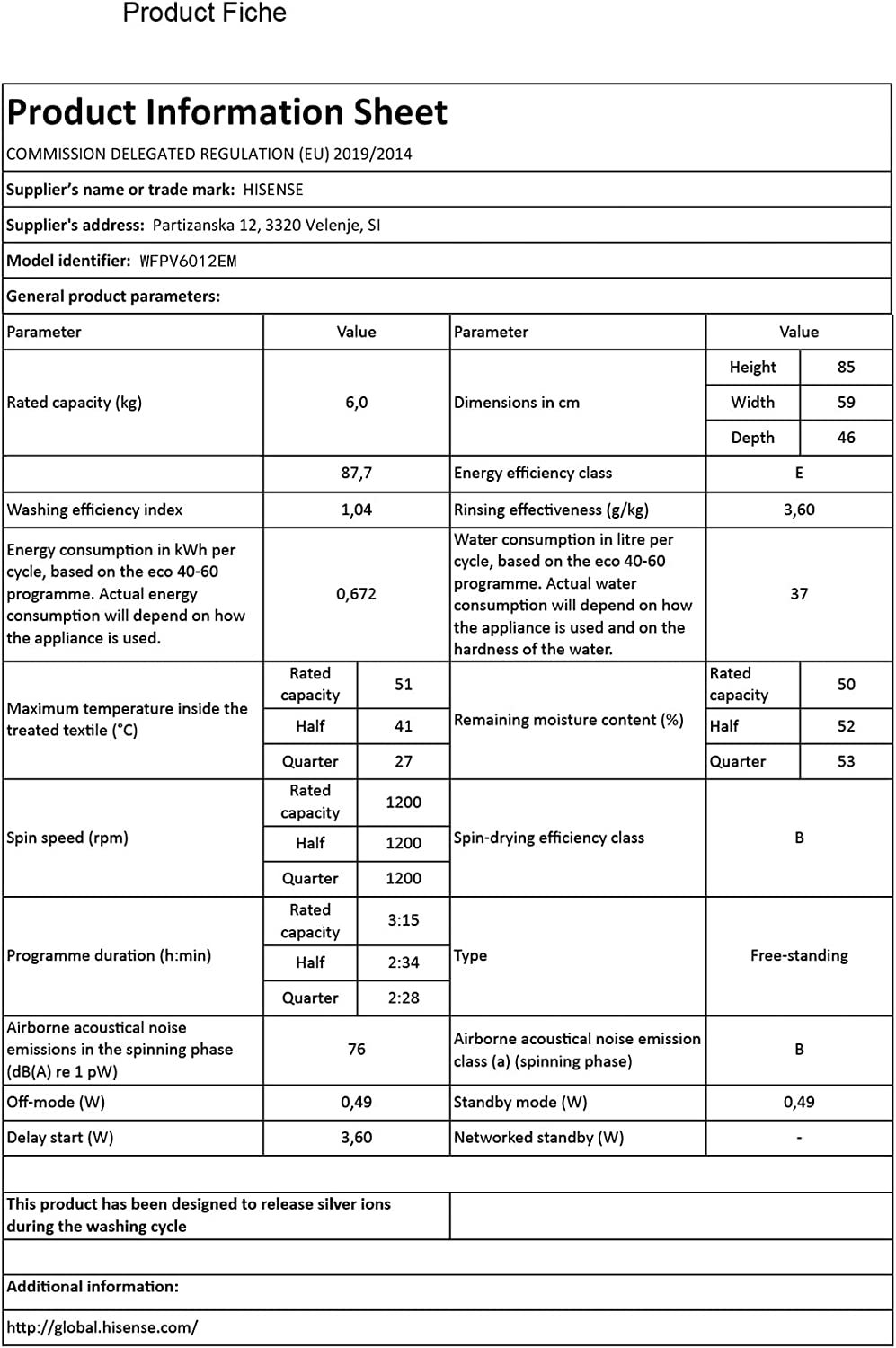 【Appliances】WFPV6012EM-Freestanding-6 KG-Front Load Washing Machine-Steam Wash-Quick Wash-15 Washing Programs