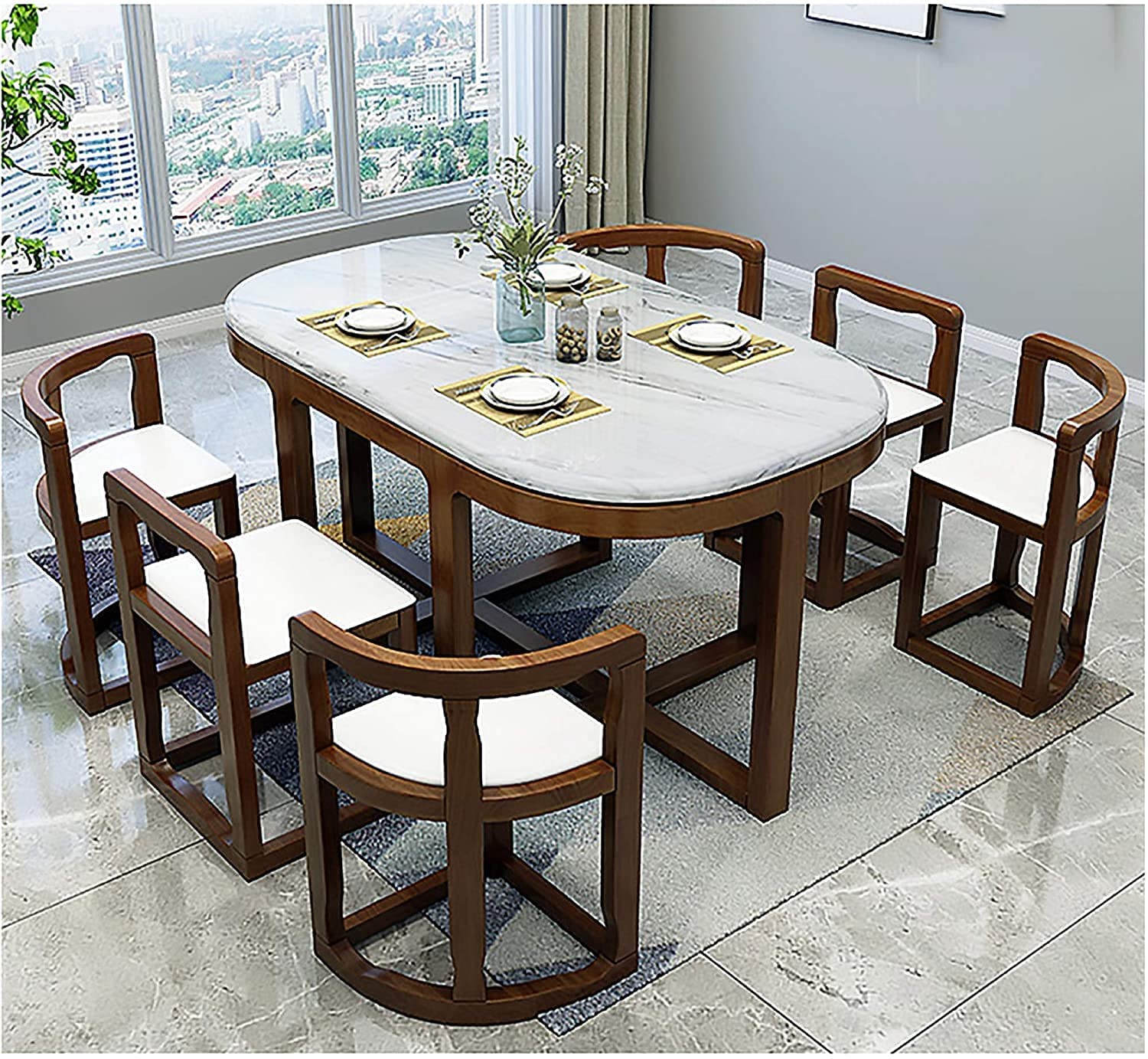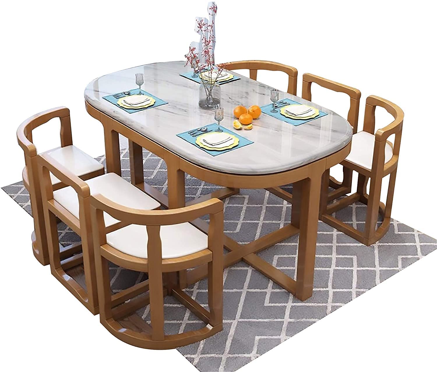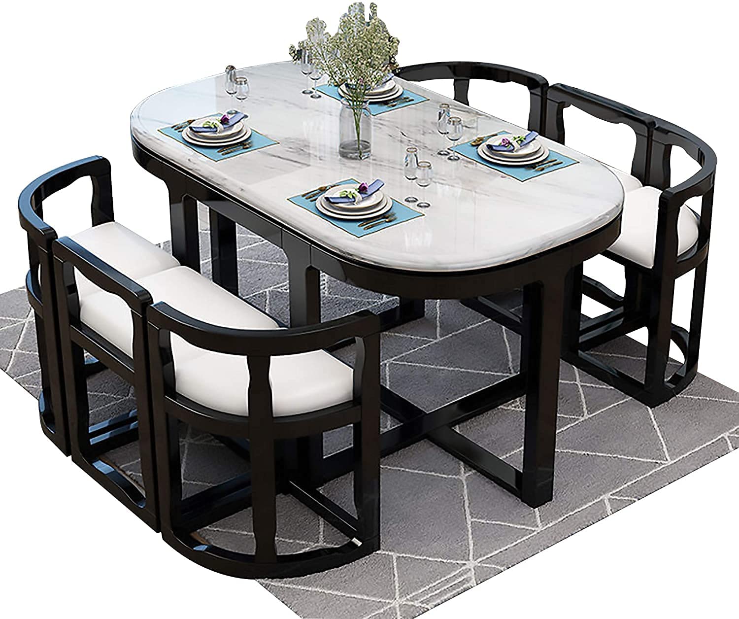 【Furniture】Dining Table Set Dining Table, Modern Minimalist Marble Dining Table and Chair Set 7 Piece Kitchen Set Furniture Table + 6 Chairs