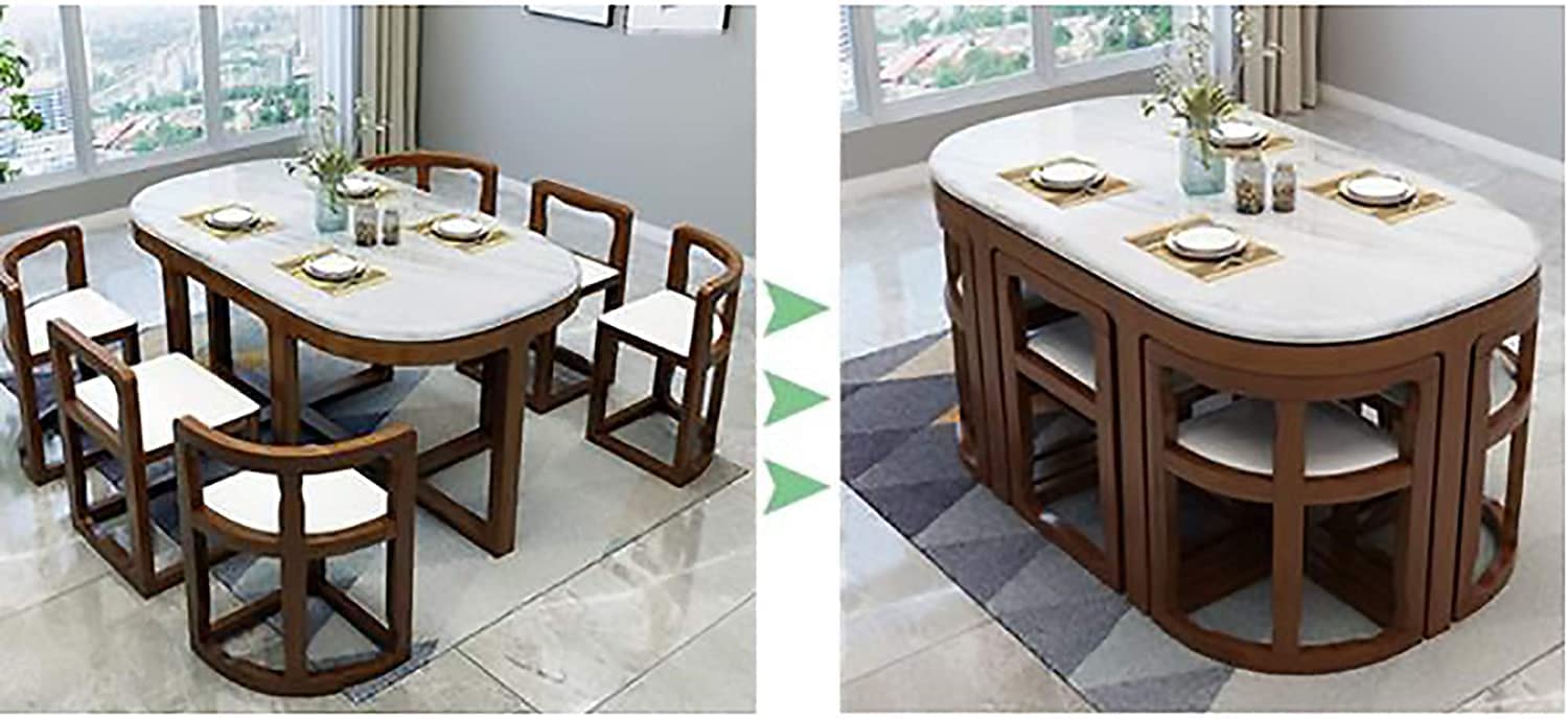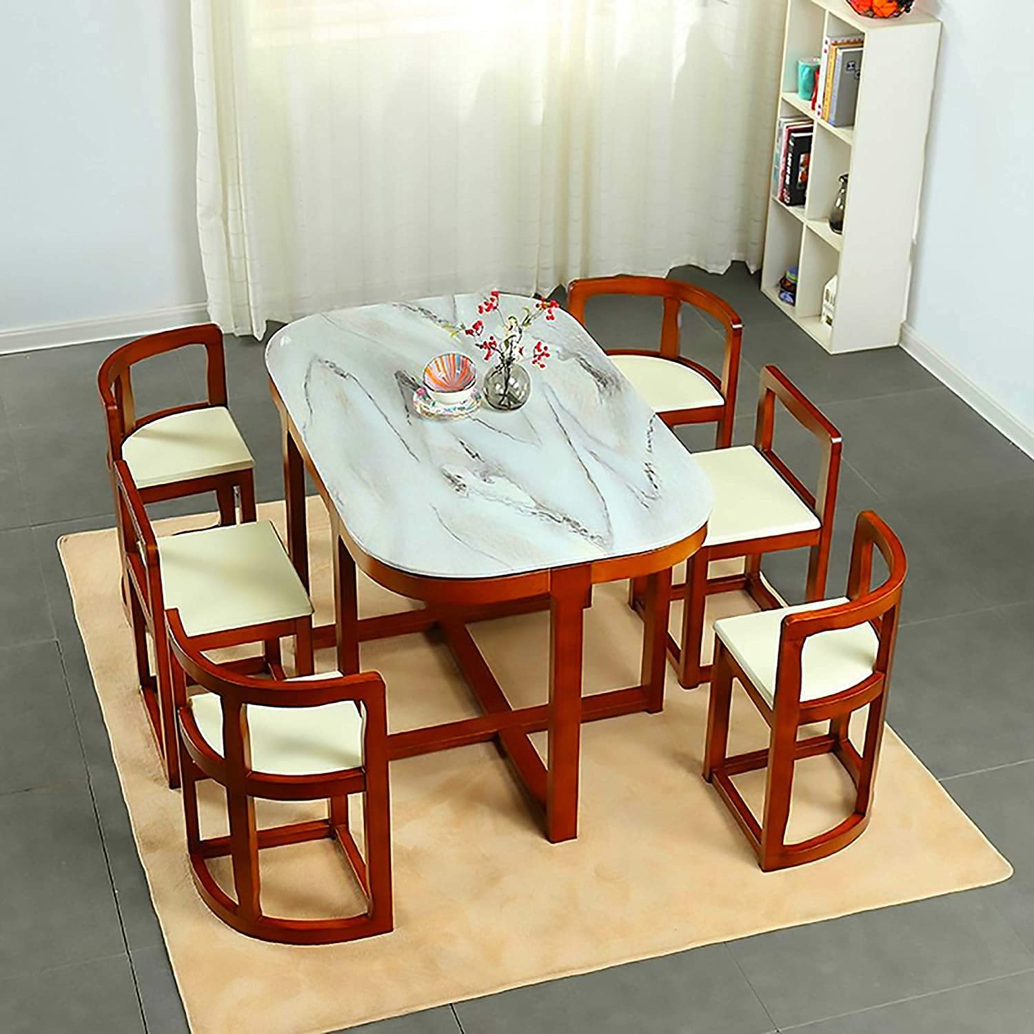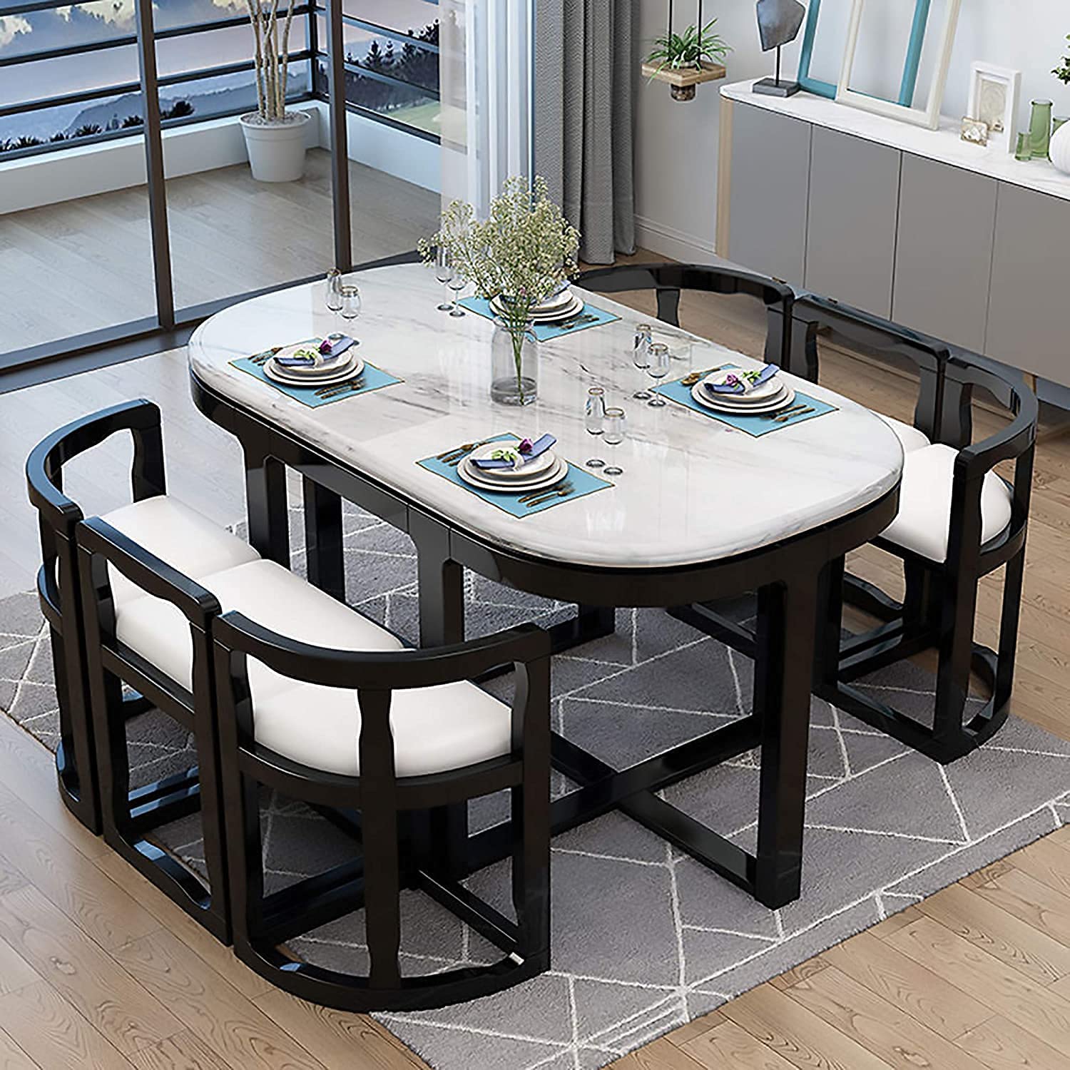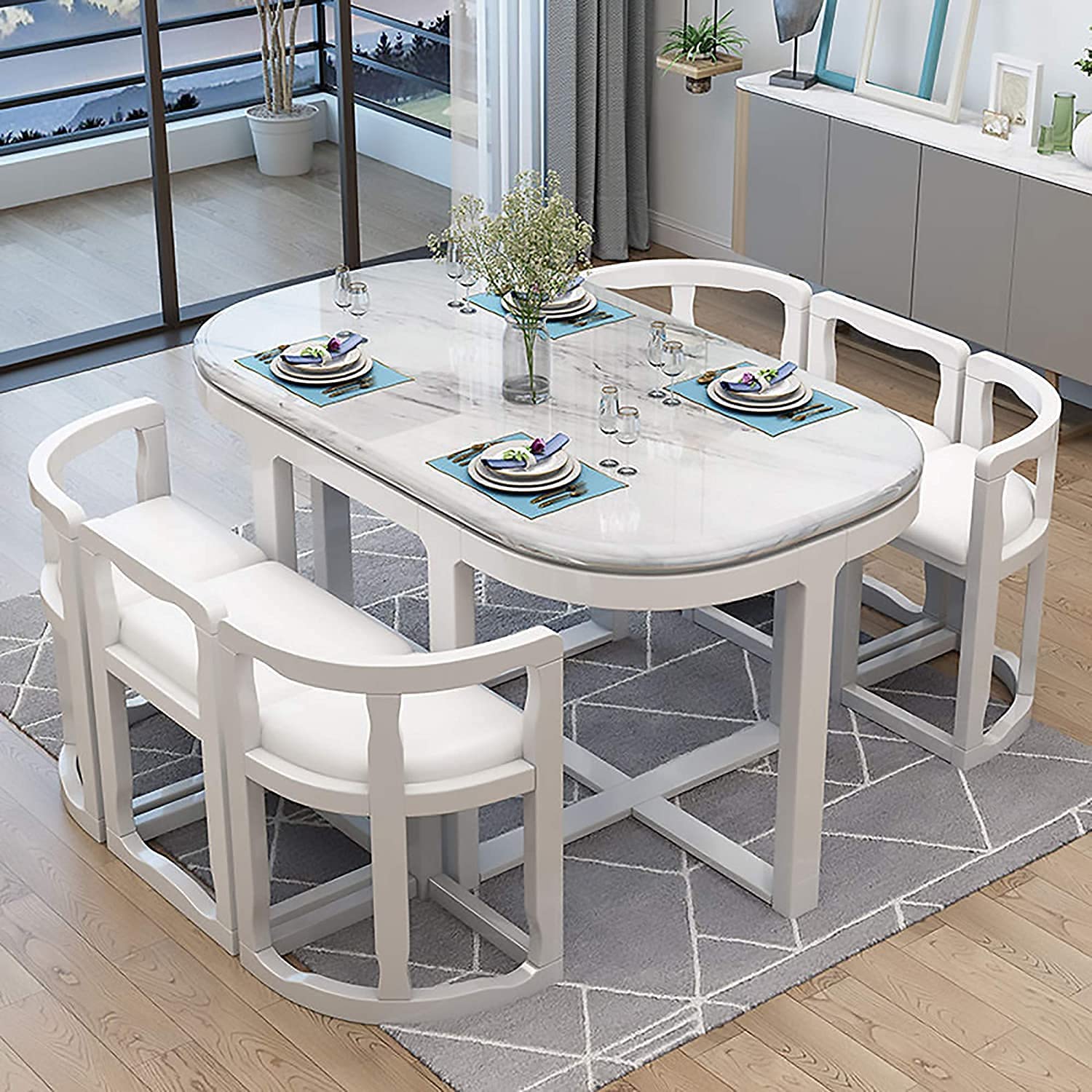 【Furniture】Dining Table Set Dining Table, Modern Minimalist Marble Dining Table and Chair Set 7 Piece Kitchen Set Furniture Table + 6 Chairs