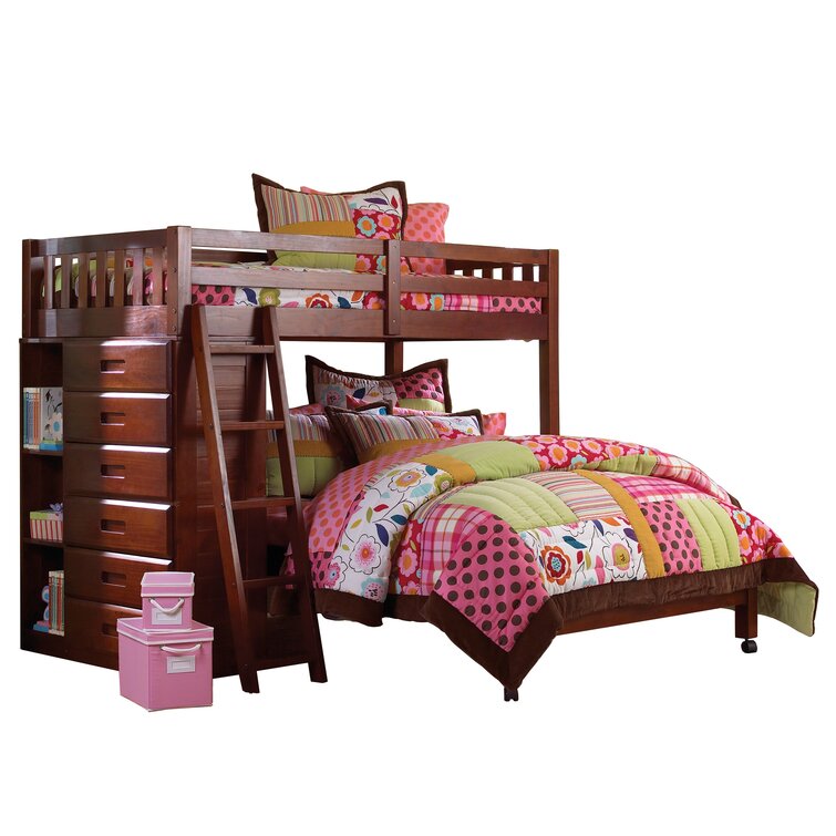 【Furniture】Giancola Twin Over Full 6 Drawer Solid Wood L-Shaped Bunk Beds with Bookcase by Viv + Rae