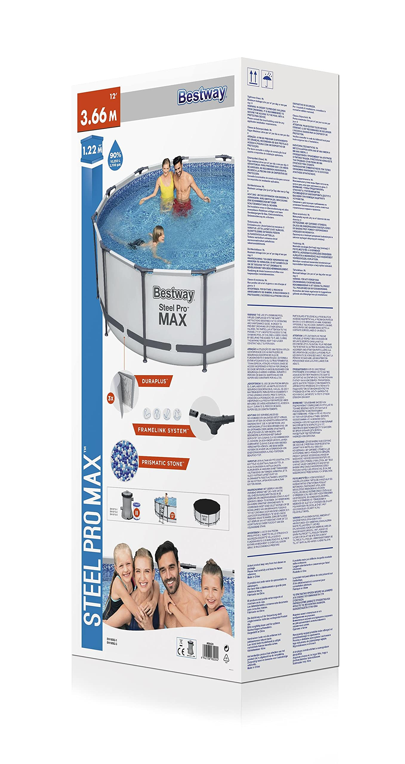 【Sports&Outdoors】【BS】Steel Pro Max Round Frame Swimming Pool with Filter Pump, Grey, 12 ft