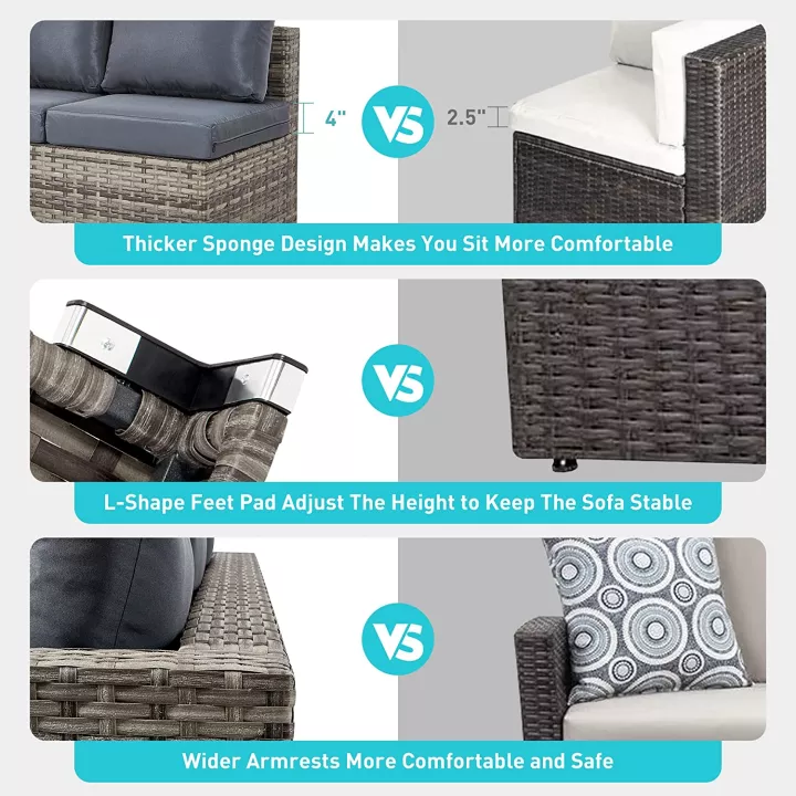 【Furniture】【BS】Semi-Assembled Rattan Garden Furniture Set 5 Piece Corner Sofa Cutlery Set