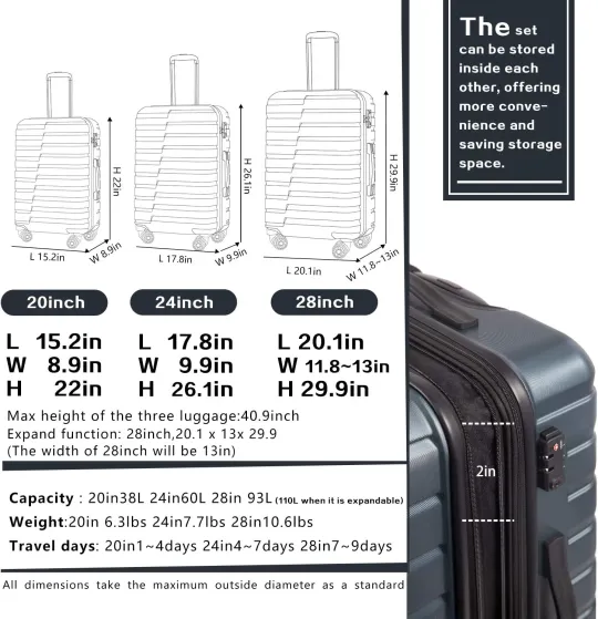 COOL Expandable Suitcase Luggage 3 Piece Sets PC ABS TSA Lock Spinner Carry on