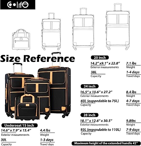 COOL Luggage 4 Piece Set Suitcase Expandable TSA lock spinner softshell