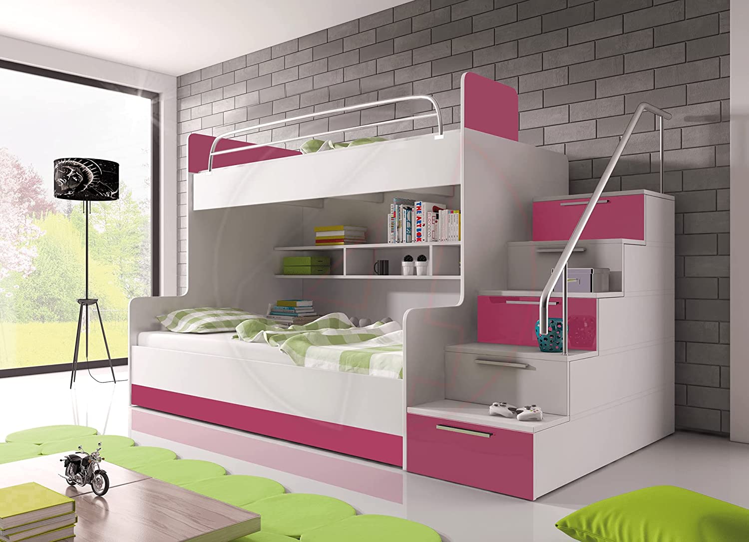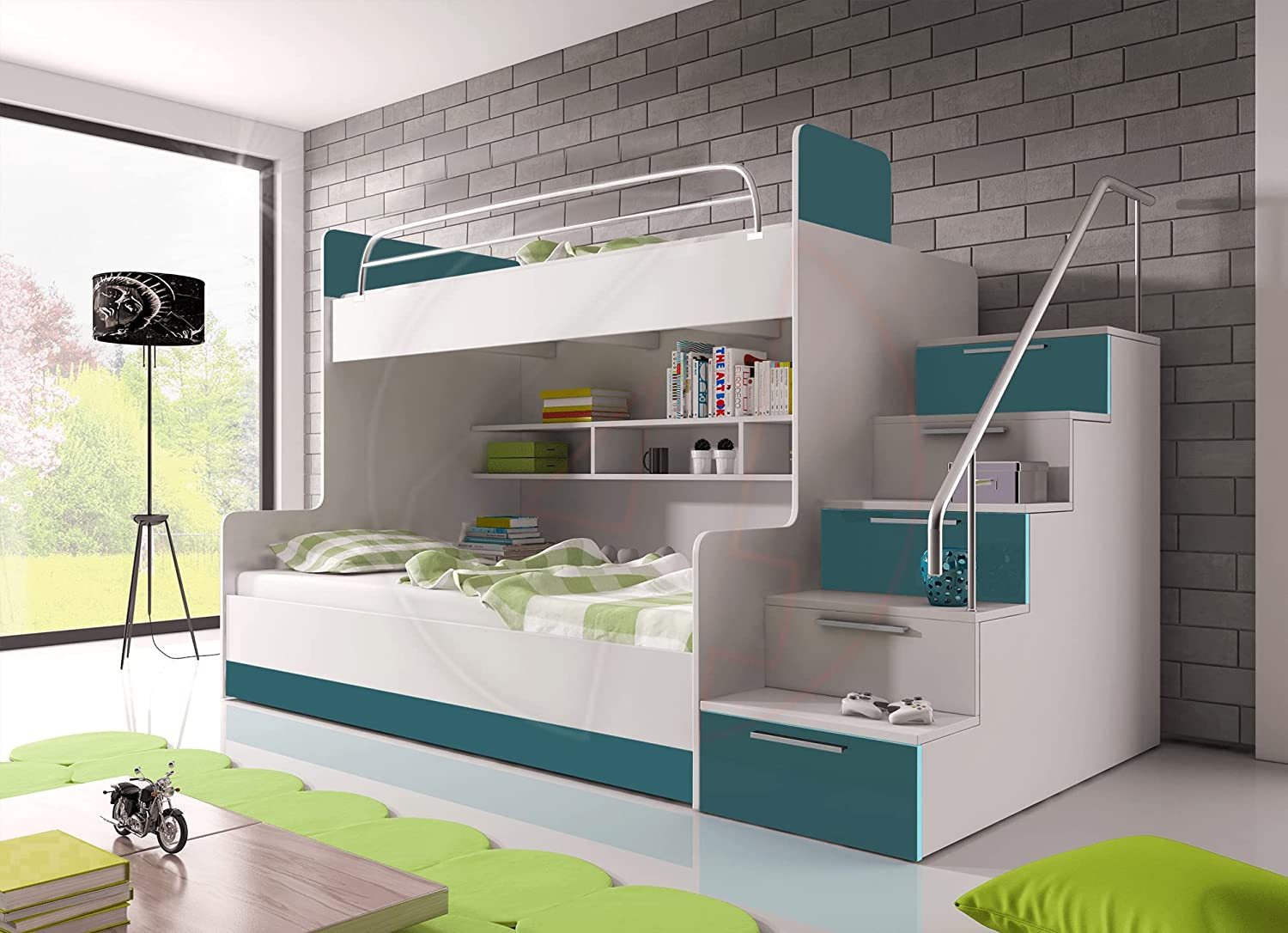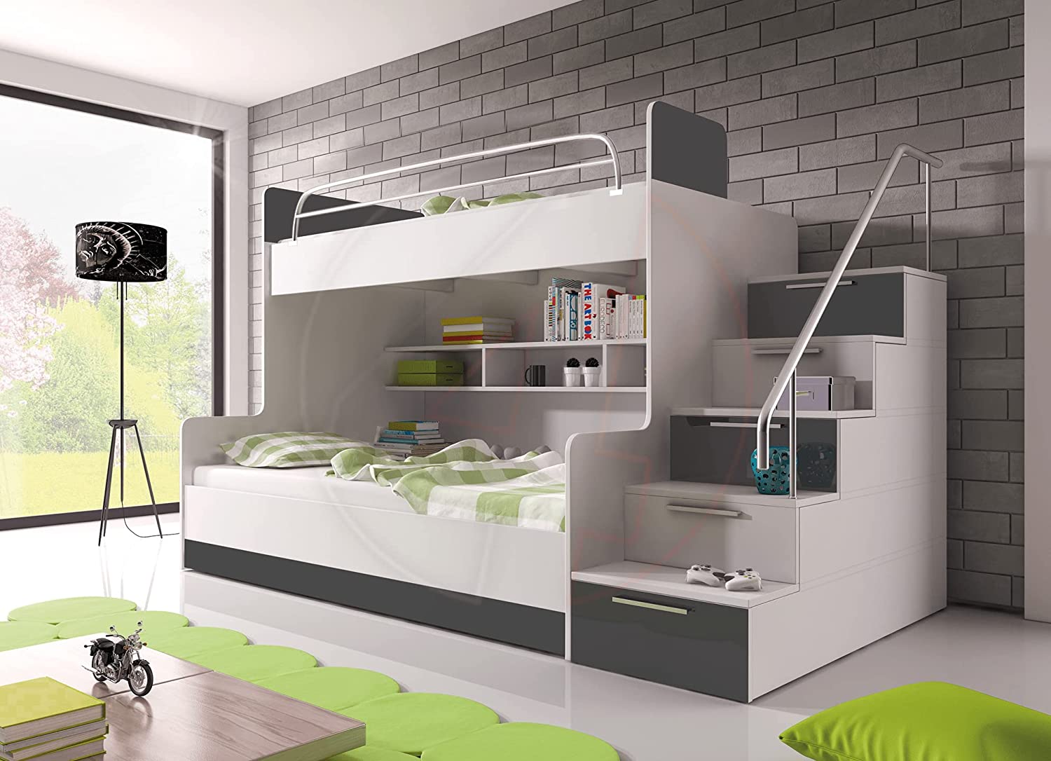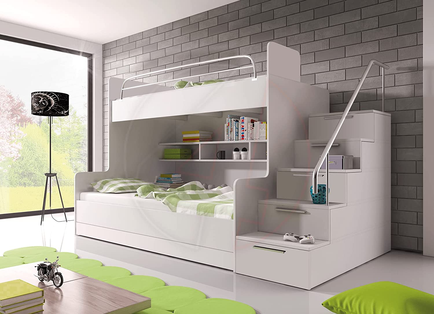 【Furniture】Modern Double Triple Bunk Bed Cabin Bed Storage High Sleeper Bed Mattresses Included Stairs