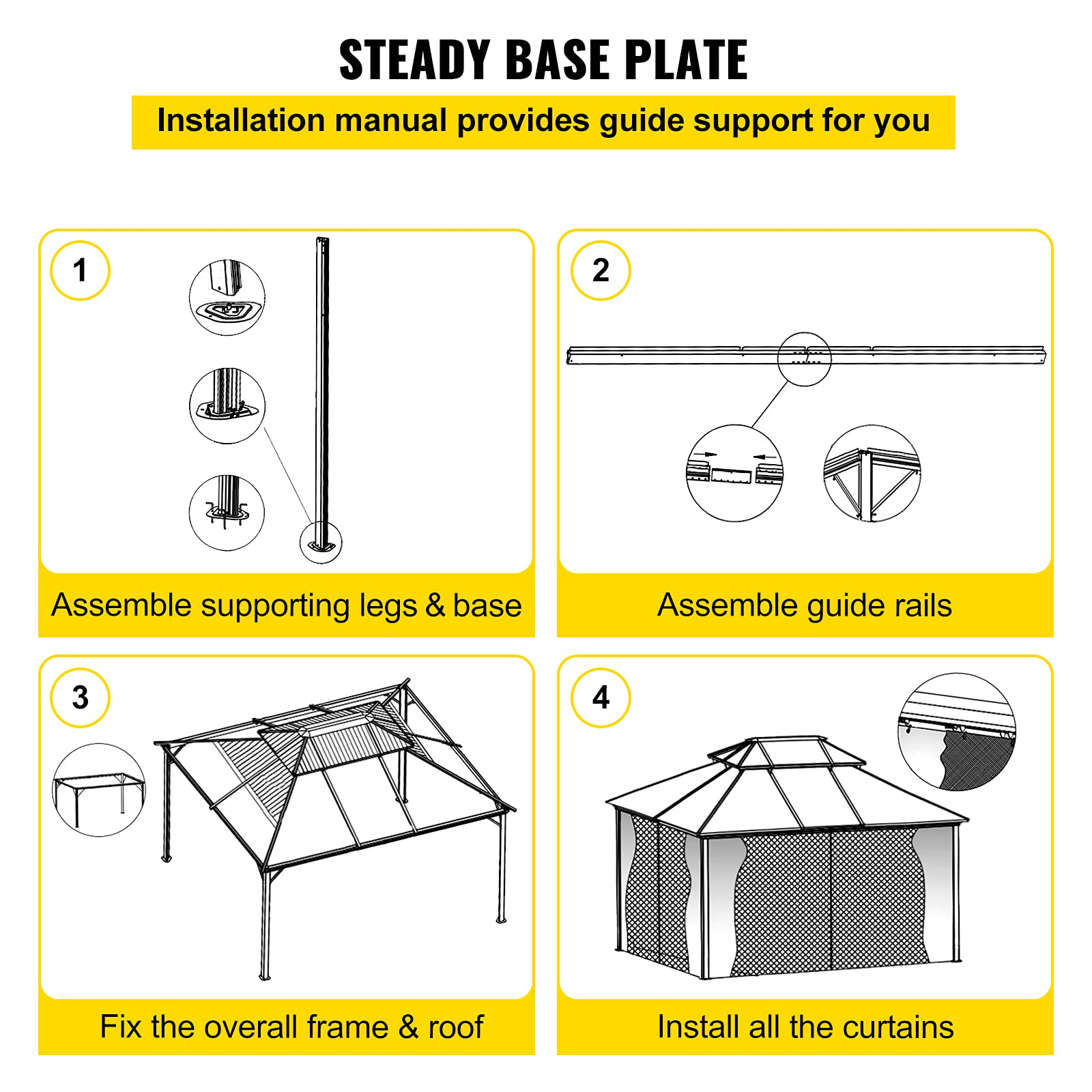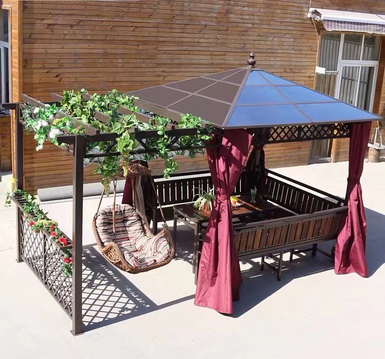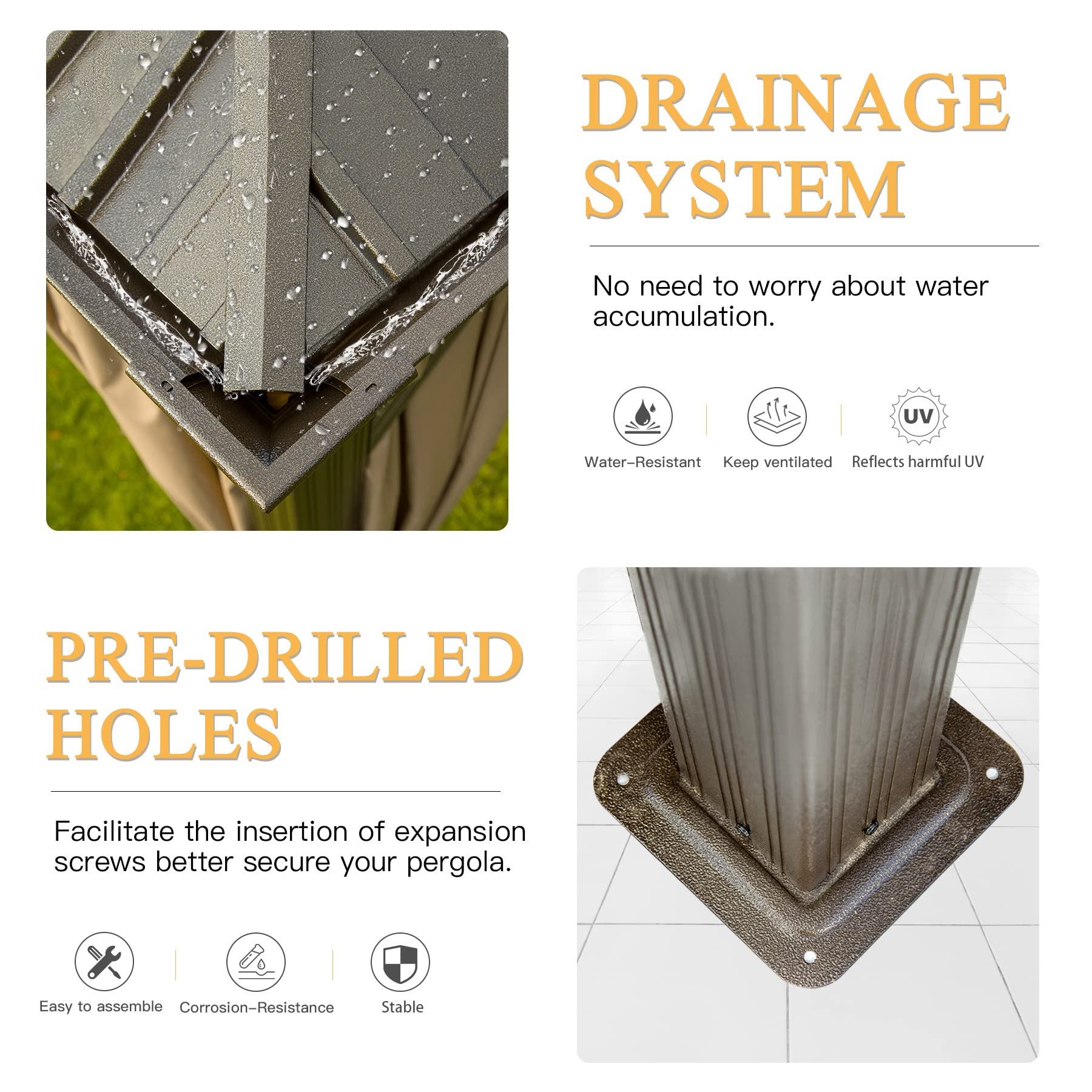 【Gazebo】【BS】Hardtop Gazebo Galvanized Steel Outdoor Gazebo Canopy Double Roof Pergolas Aluminum Frame