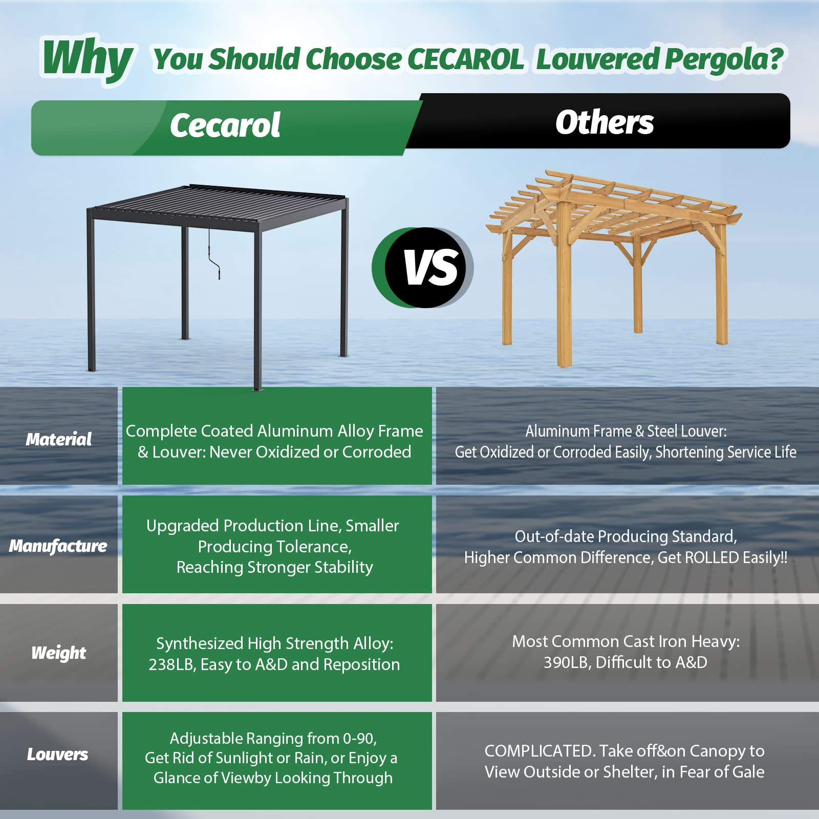 【Home&Garden】【BS】10'x10' Sun Shade Aluminum Pergola Rainproof Gazebo with Adjustable Roof