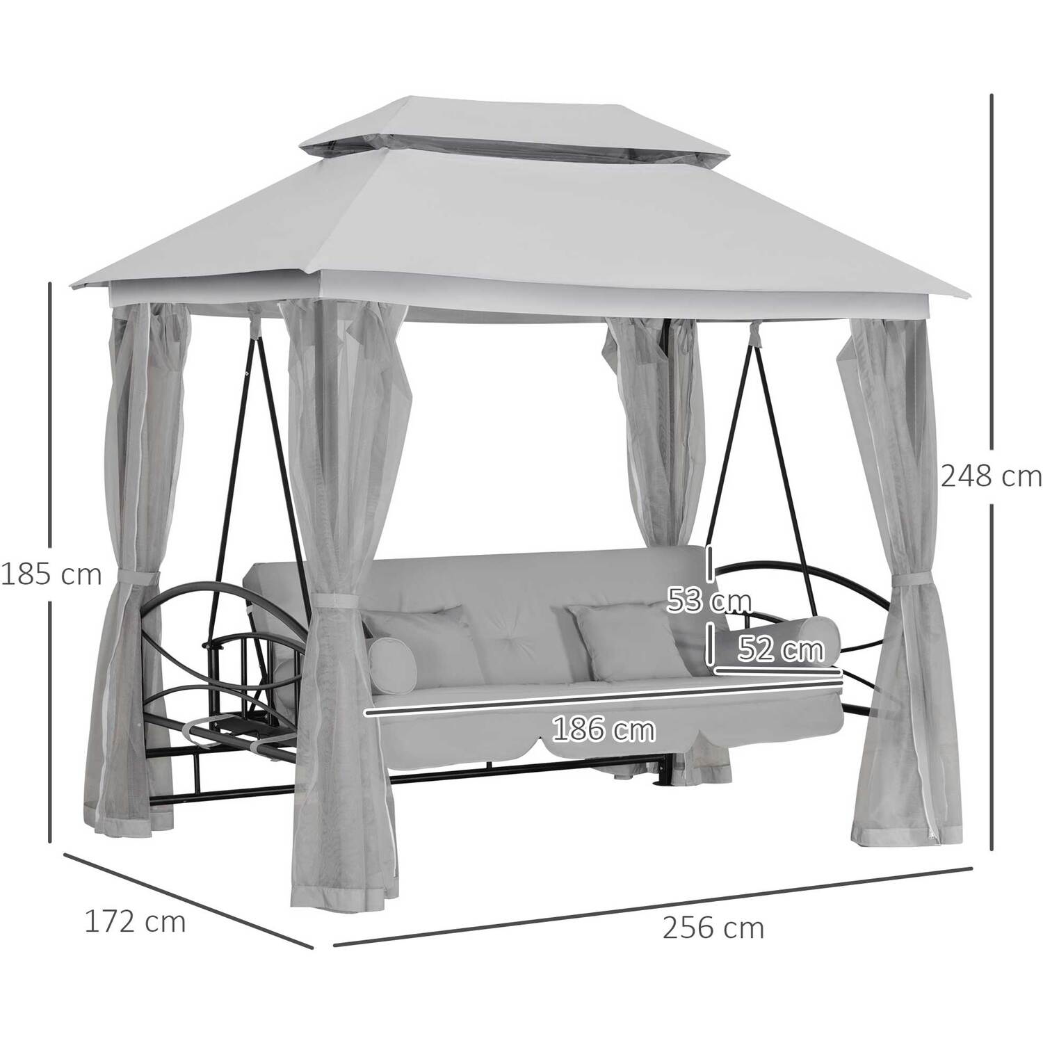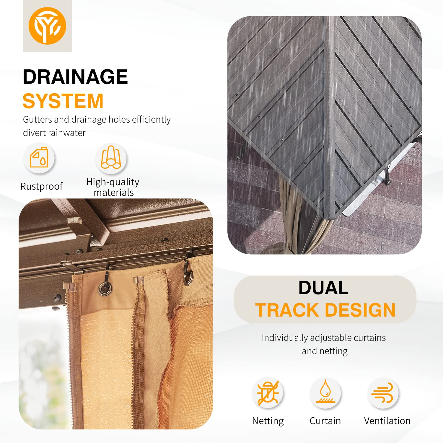 【Gazebo】11x13 Gazebos with Planters, Outdoor Patio Steel 2-Tier Soft Top Gazebo with Netting & Curtains