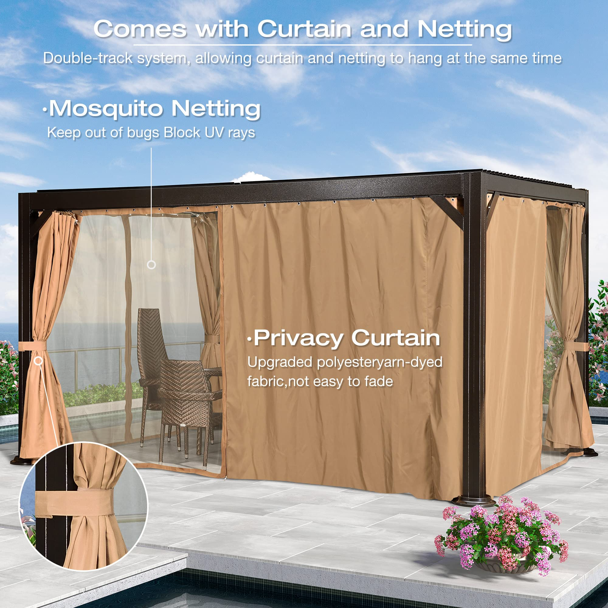 【Home&Garden】Outdoor Louvered Pergola 10'x13' Patio Hardtop Gazebo Sun Shade Shelter Outside Canopy