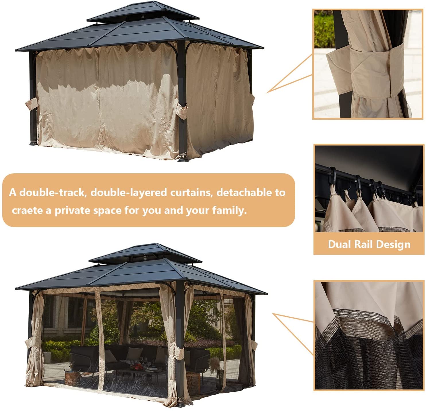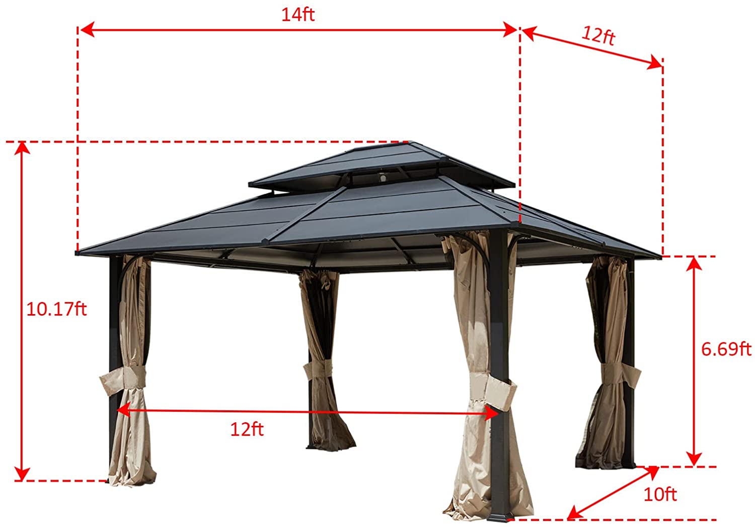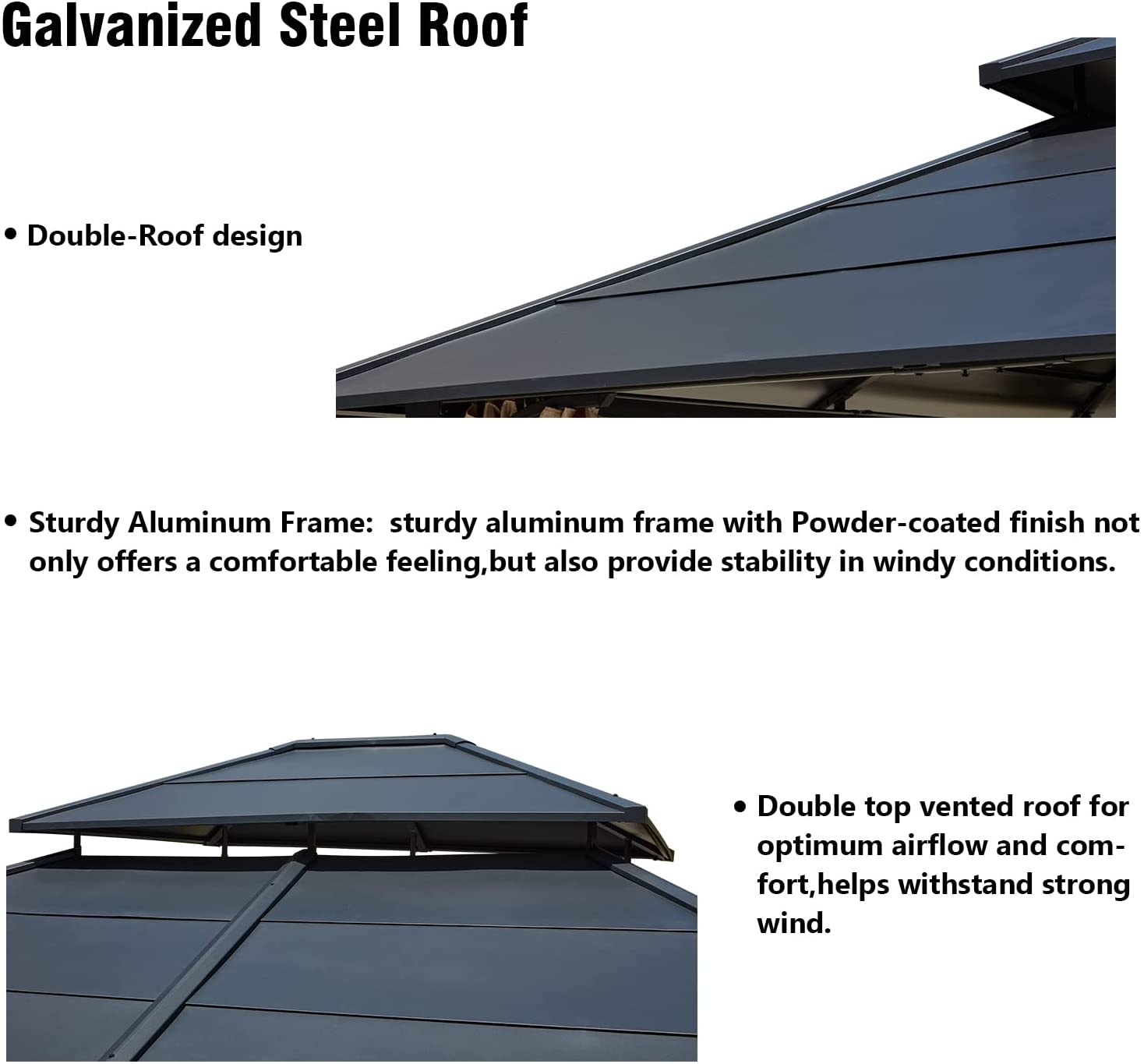 【Gazebo】10'x10', See Through Double Vented Roof, UV & Waterproof Polycarbonate Hardtop Cover