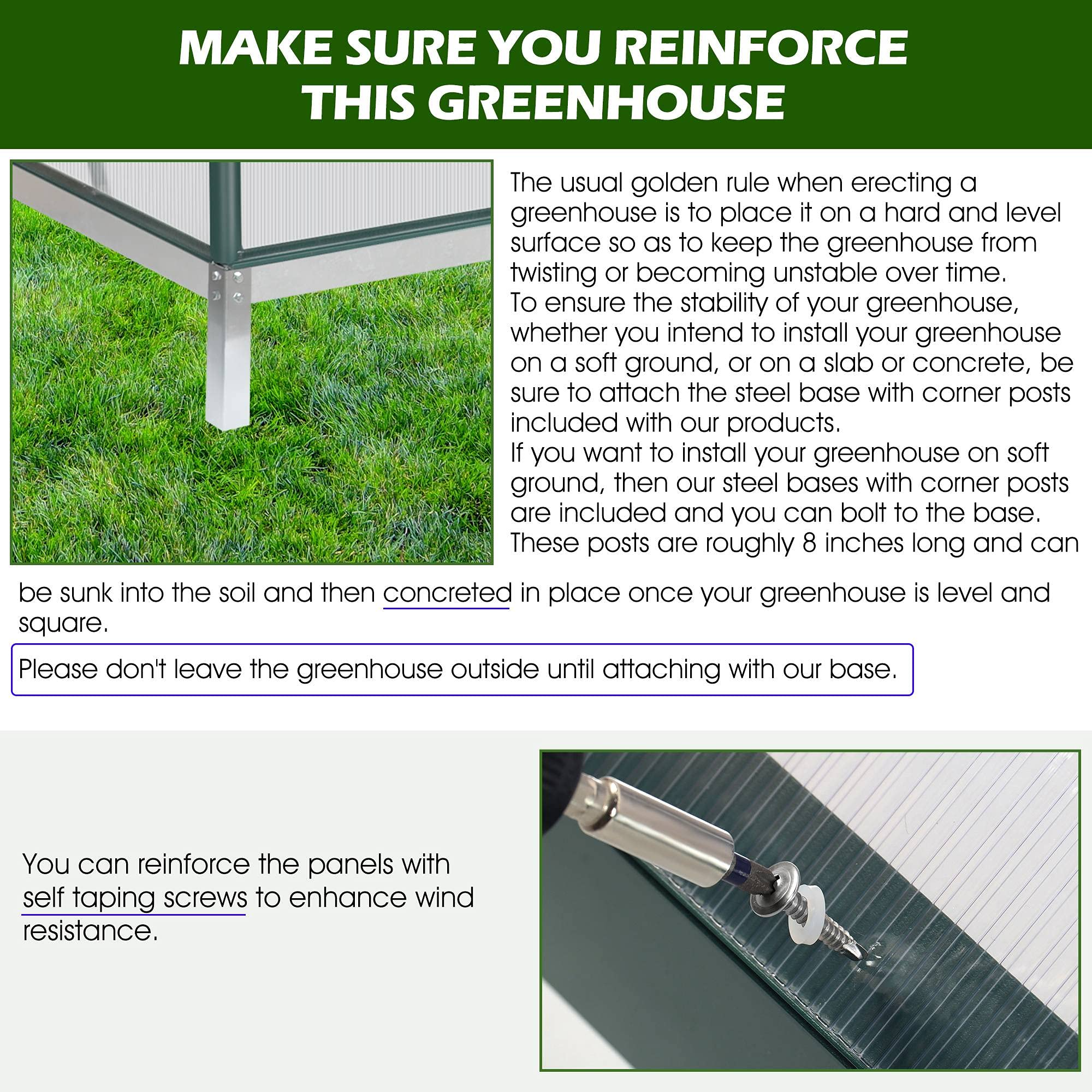 【Home&Garden】6x8 Hobby Greenhouse, Polycarbonate Aluminum Green House with Window, Heavy Duty Greenhouses Kit