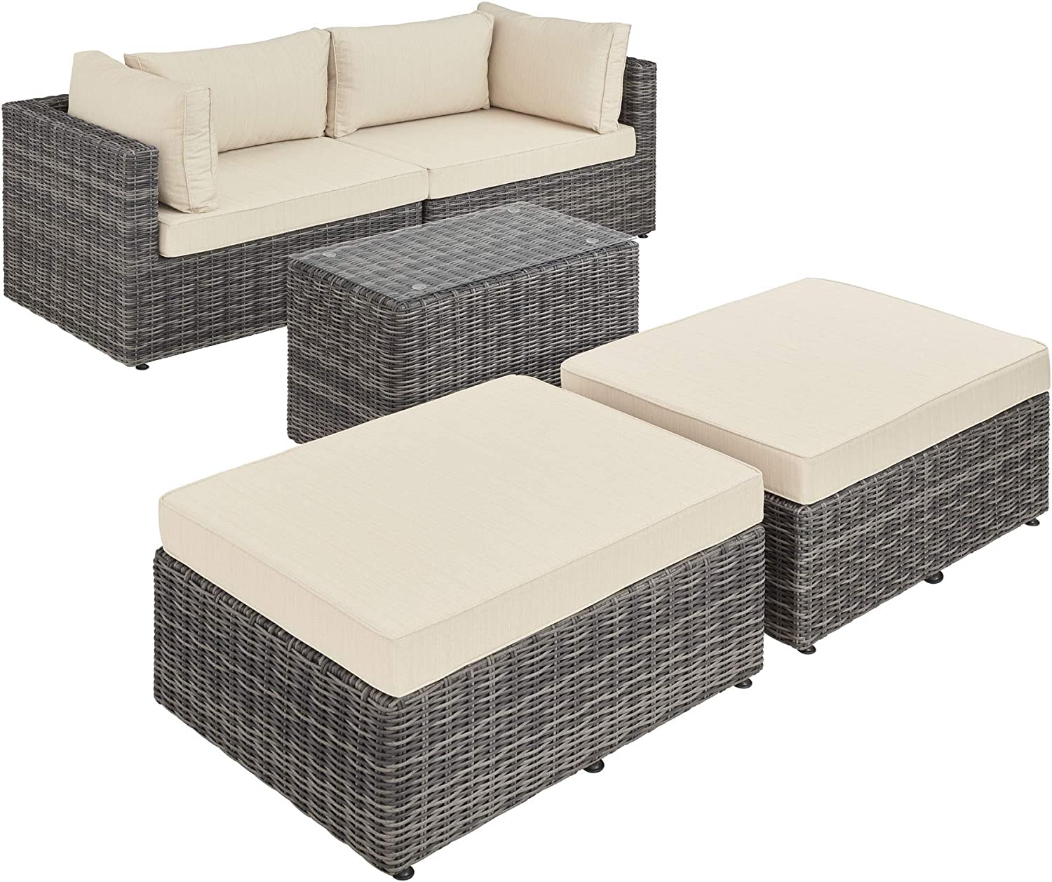 Luxury Double Rattan Chair Aluminium, Lounge Furniture, Garden Set with Table, Easily Combined, with Cushions