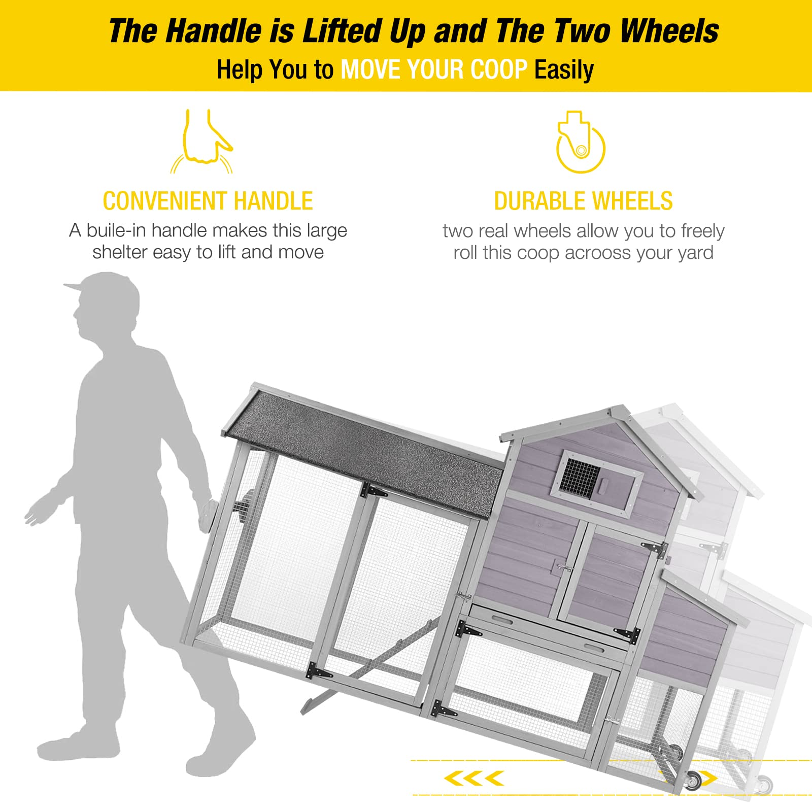 【Home&Garden】80 Movable Chicken Coop with Wheel and Run, Large Backyard Hen House with Nesting Box