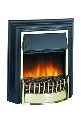 【Home Improvement】Dimplex Cheriton Freestanding Optiflame Electric Fire, Traditional Fireplace Suite, Imitation Burner Stove with LED Flames, Thermostat, 2kW Heater, Real Coal & Remote Control – Black/Brass