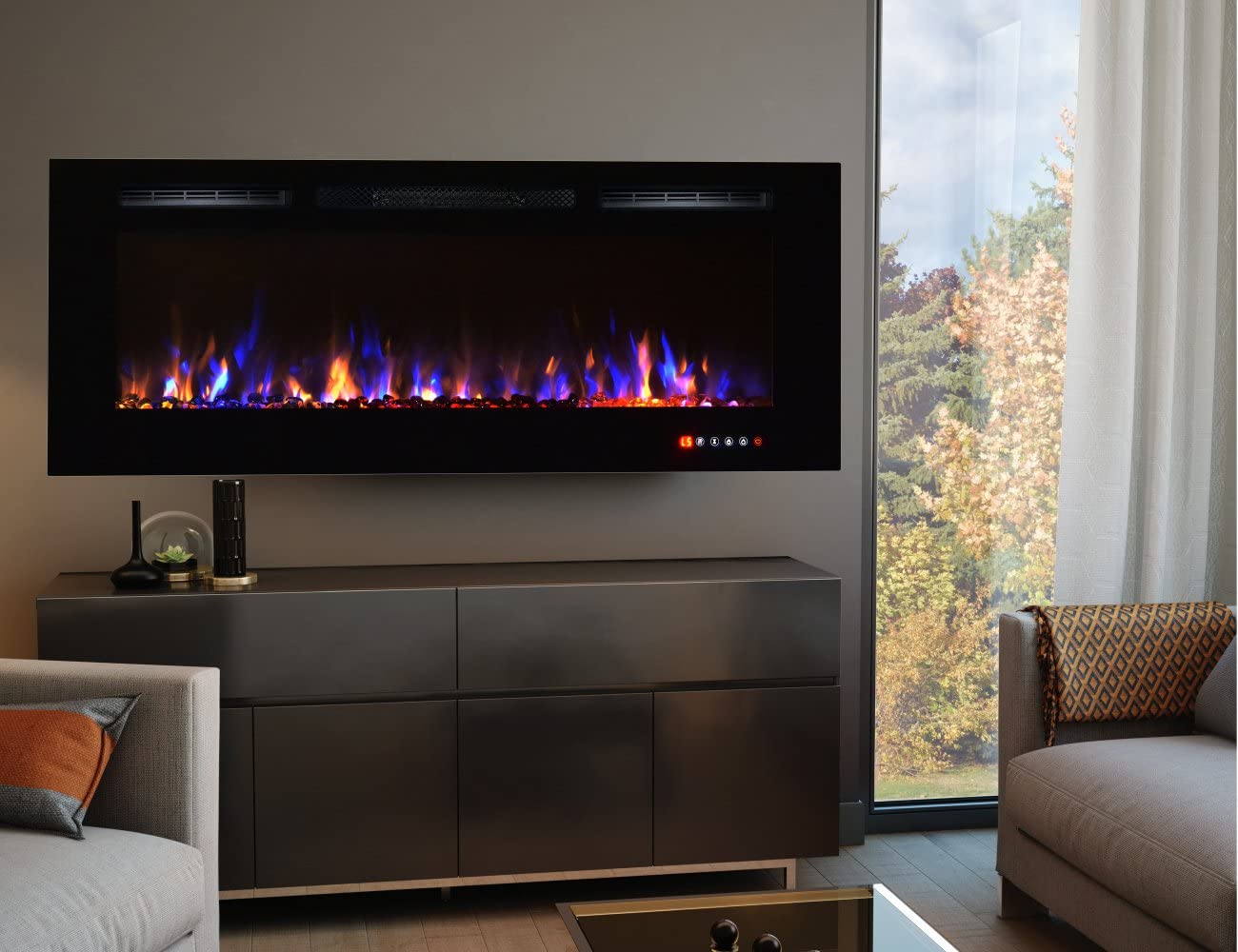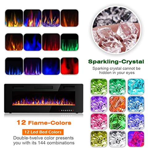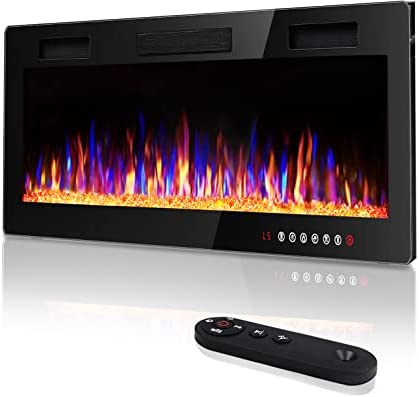 Vitesse 50 inch Ultra-Thin Electric Fireplace in-Wall Recessed and Wall Mounted Fireplace Heater,Linear Fireplace with Multicolor Flame,Timer,Low Noise,750/1500W,Touch Screen & Remote Control(50’’)