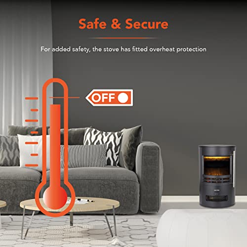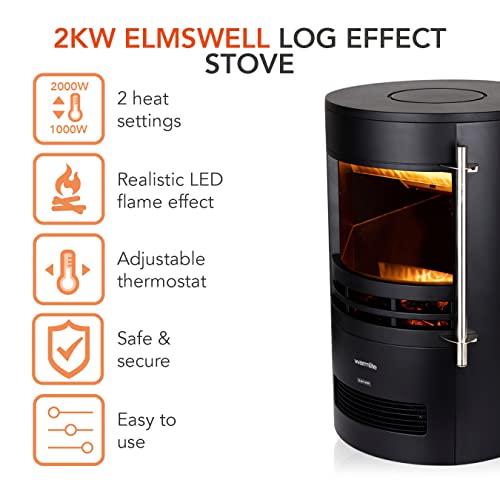 【Home Improvement】Warmlite WL46022 Elmswell Round Contemporary Stove with Two Heat Settings, Realistic LED Flame Effect, 2000W, Black