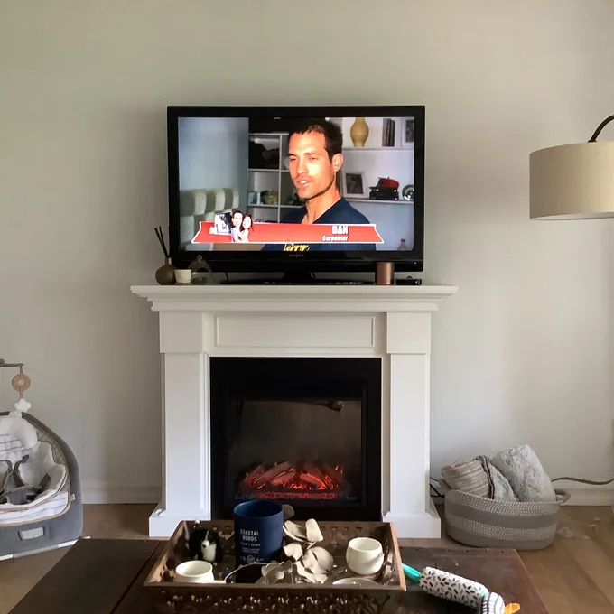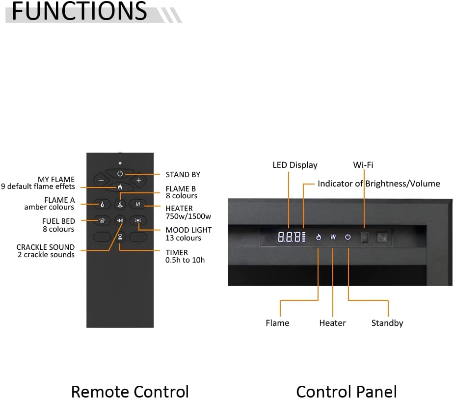 【Home Improvement】Endeavour Fires Runswick Wall Mounted Electric Fire, 220/240Vac, 50 Hz, 1&2kW, 7 day Programmable remote control with an Off White MDF Mantel & Plinth