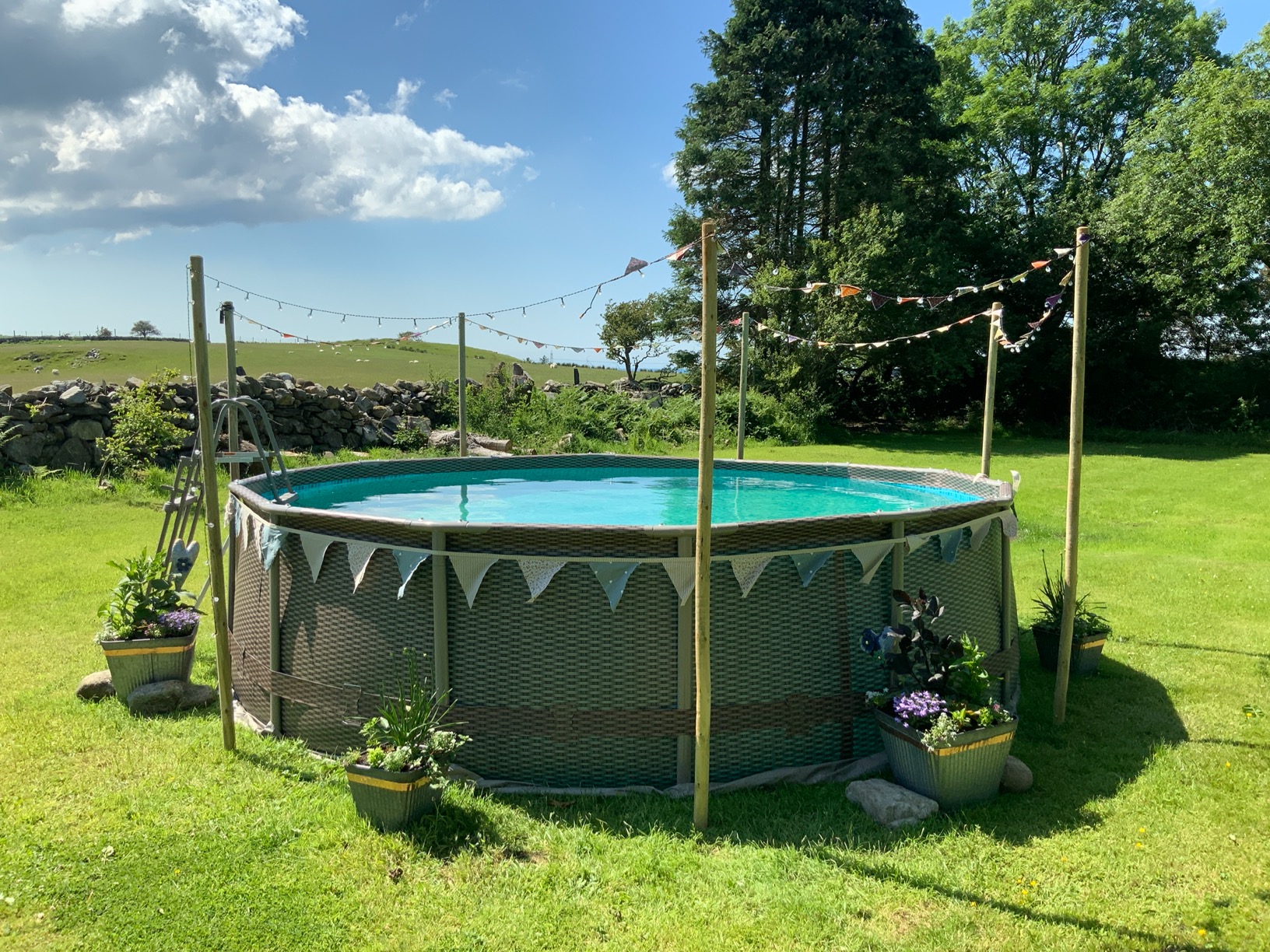 【Sports&Outdoors】Steel above ground pool, with filter and ladder, Grey rattan Print, 13.3 FT