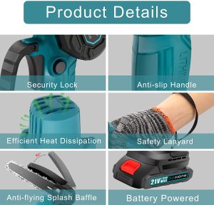 Chain saw 6 inches, with 2 batteries, cordless power chain saw, with safety lock, handheld small chainsaw