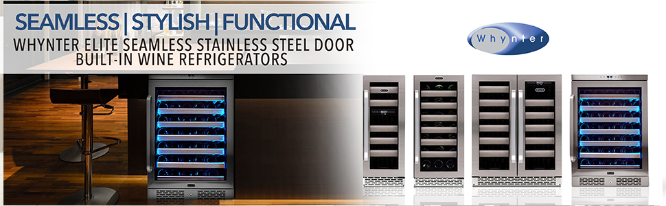 BWR-401DS Whynter Elite 40 Bottle Seamless Stainless Steel Door Dual Zone Built-in Wine Refrigerator