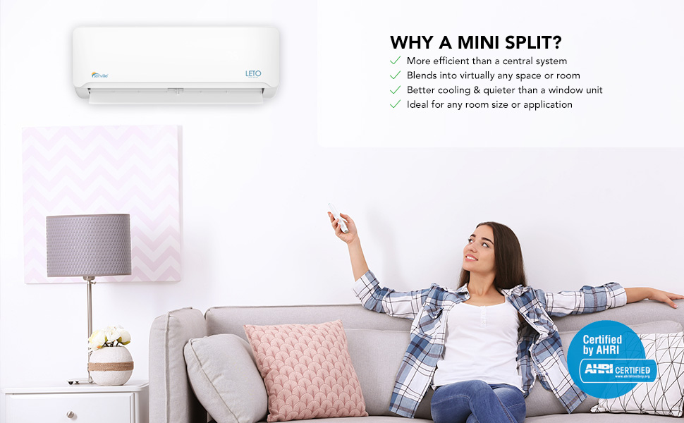 - 4-IN-1 MINI SPLIT SYSTEM: With air conditioning, built-in heat pump (up to 5F/-15C), dehumidifier, fan and turbo function. DC Inverter, UL Listed, AHRI Certified, Works with Alexa