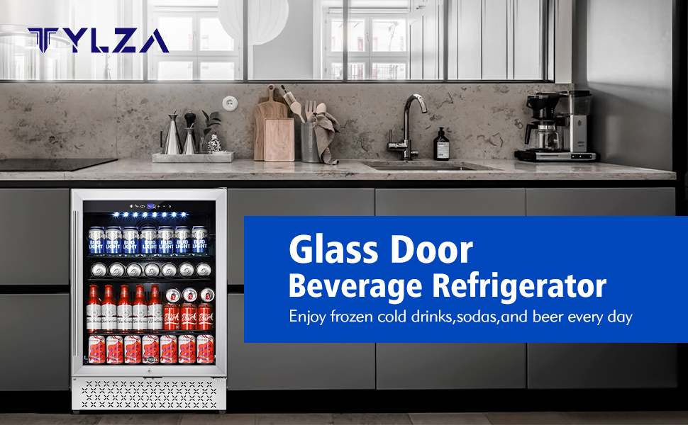【Tempered Glass Door & 2 Safety Locks】The Tylza beverage refrigerator Double-paned tempered glass door and seamless design ensure a safe operation and seamless air insulation. The soft-close door features magnetic seals. Plus, there is a door key lock on the bottom of the beverage. Prevent incident hurt to kids.