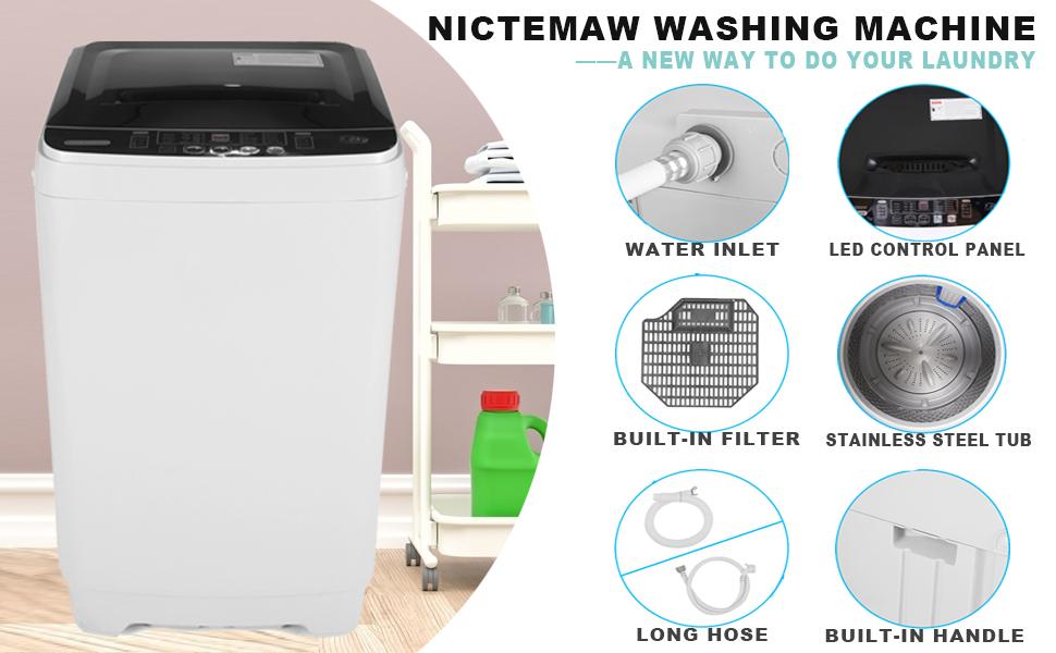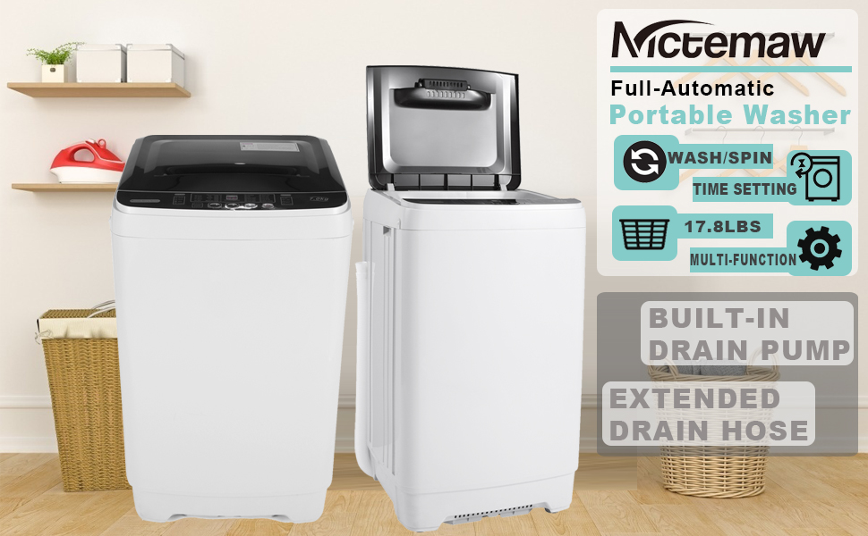 • 【Appliances】Portable Washer Nictemaw 17.8Lbs Capacity Full-Automatic Washer Machine 1.9 Cu.ft