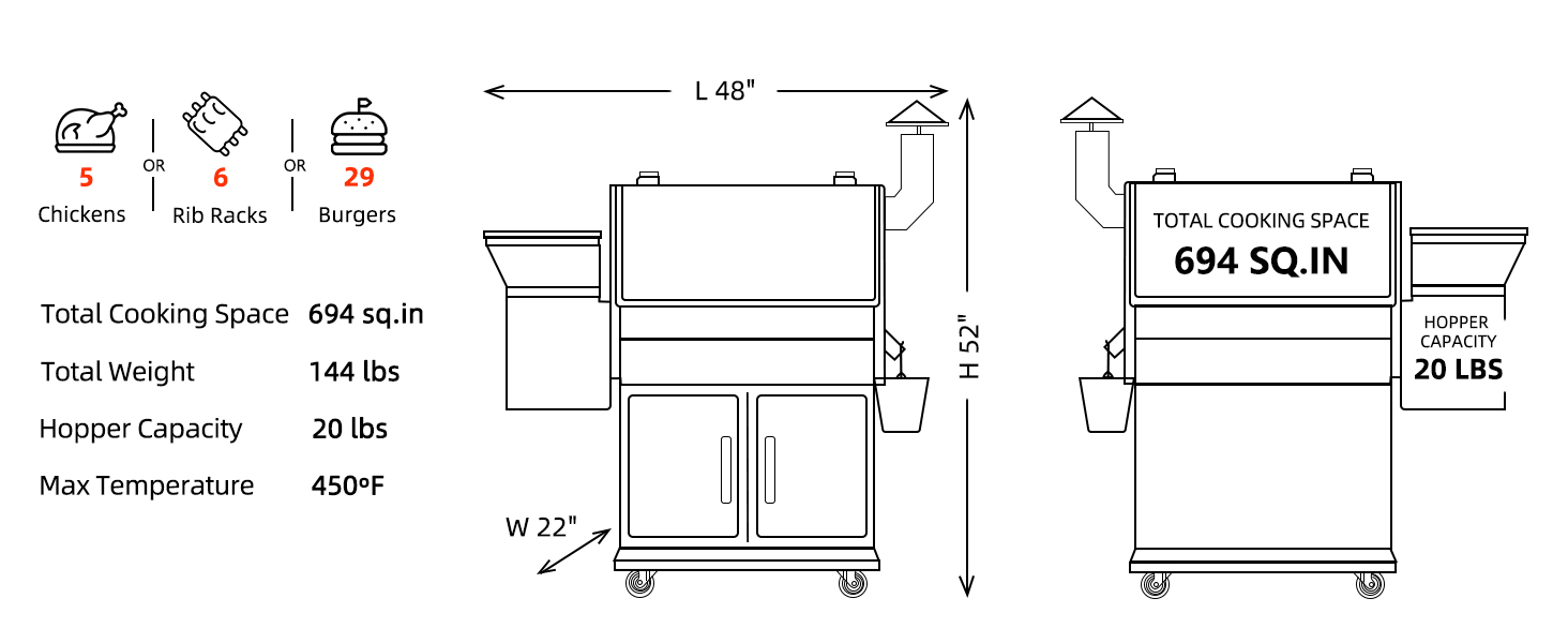 8-IN-1 GRILL&SMOKER - Offers more versatility to smoke, bake, roast, sear, braise, barbecue, and char-grill food with healthy wood pellet. Just set it and let it work. No babysitting the grill! Infuse your food with rich smoky flavor