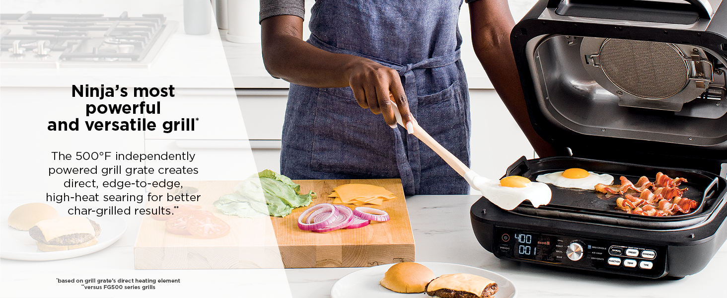 NINJA'S MOST POWERFUL GRILL: 500F independently powered grill grate creates direct, edge-to-edge high-heat searing for better char-grilled results. (Based on grill grate's direct heating element Versus FG500-series grills.)