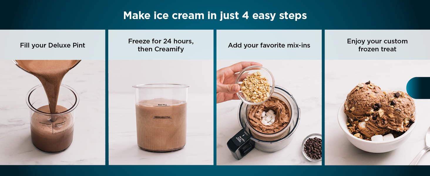 - EASY TO USE: Create a CREAMi treat in three simple steps. Simply prepare your base, freeze overnight, process, and enjoy!