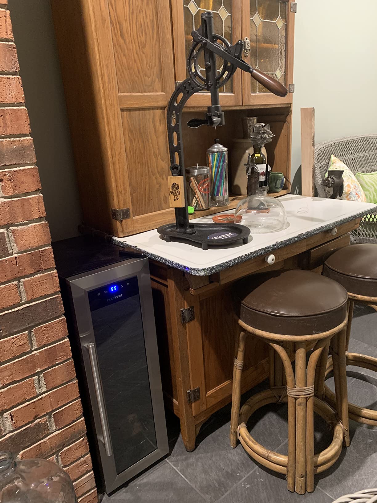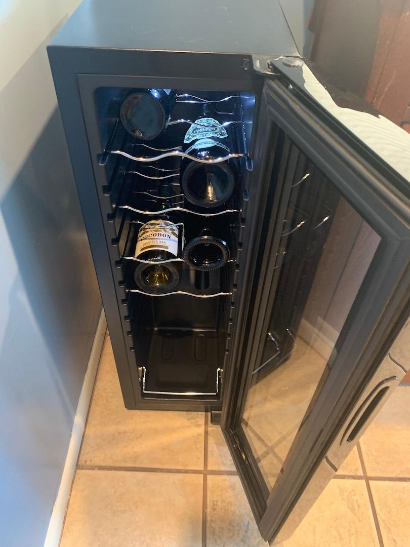 【Appliances】NutriChef PKCWC12 12 Bottle Cooler Refrigerator White and Red Countertop Chiller