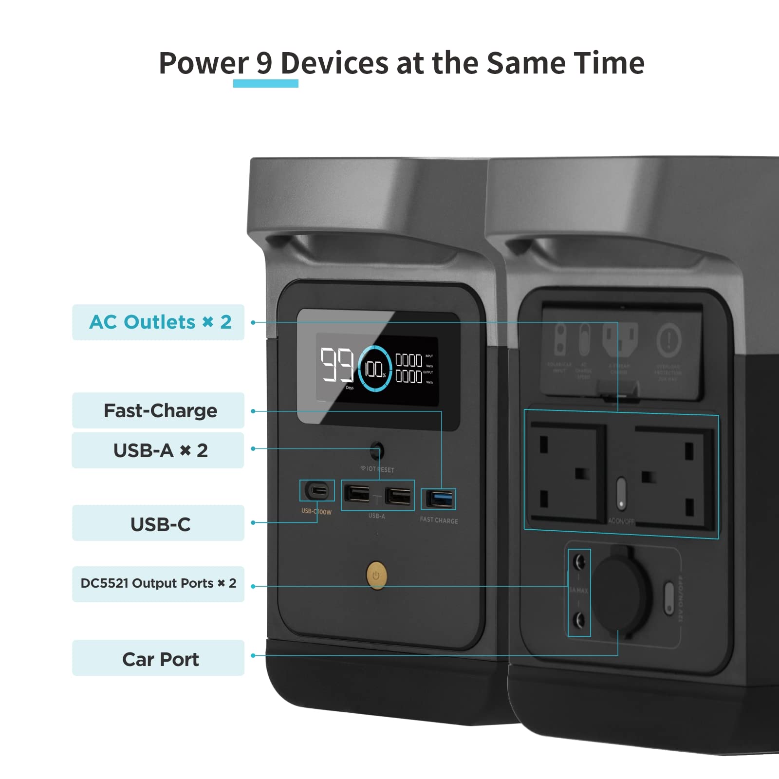 【Appliances】882Wh Portable Power Station, Power up to 9 Appliances With Huge 1400W AC Output