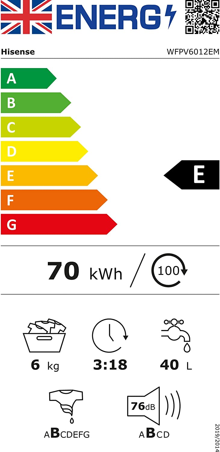 WFPV6012EM-Freestanding-6 KG-Front Load Washing Machine-Steam Wash-Quick Wash-15 Washing Programs