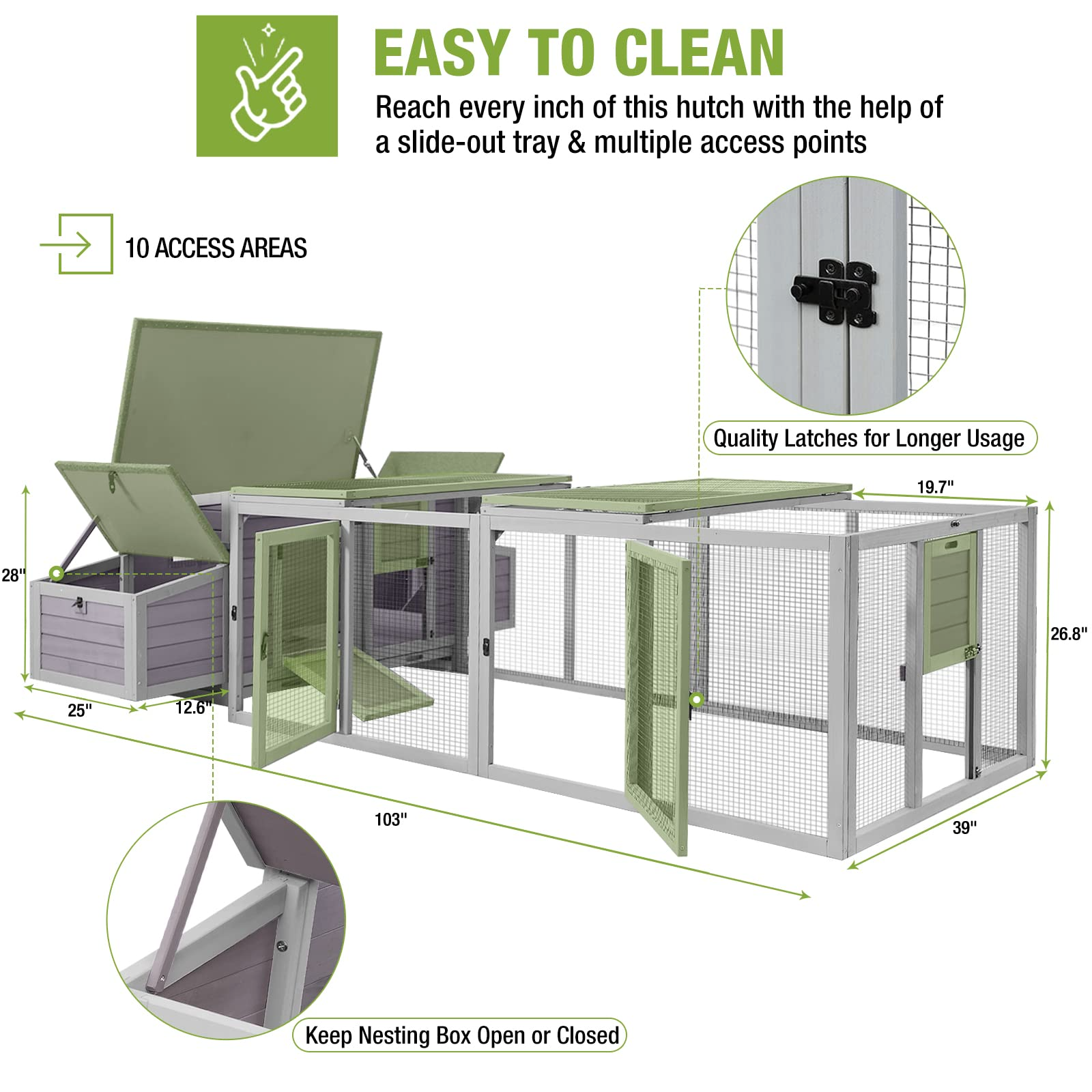 【Home&Garden】【BS】103in Large Chicken Coop Outdoor Wooden Chicken House, Hen House Poultry Cage for 4-6 Hens