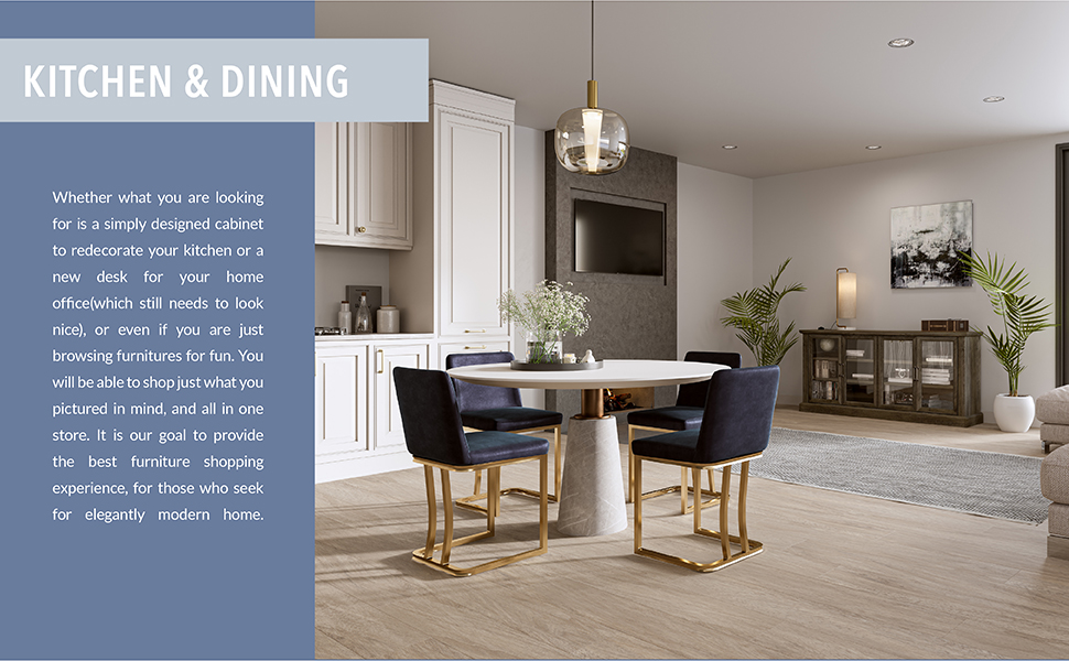 - [MODERN DESIGN] Stylish design with clean lines, mixed color accents, and golden alloy handles give this buffet cabinet a contemporary appeal with a decorative touch. Measures 64"L x 15.75"W x 32"H with a capacity of 70 lbs.