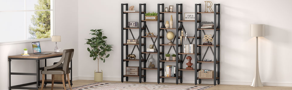 • 【Furniture】Rustic Super Wide 86 Inch 5 Tier Bookcase with 23 Shelves, 5-Shelf Etagere Large Open Bookshelf