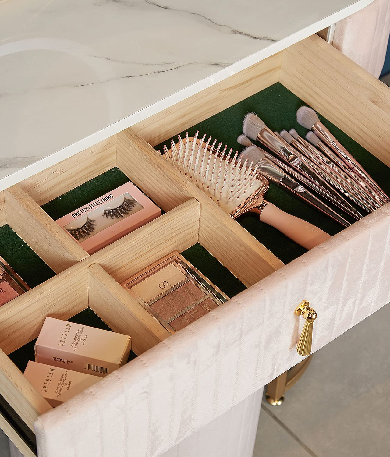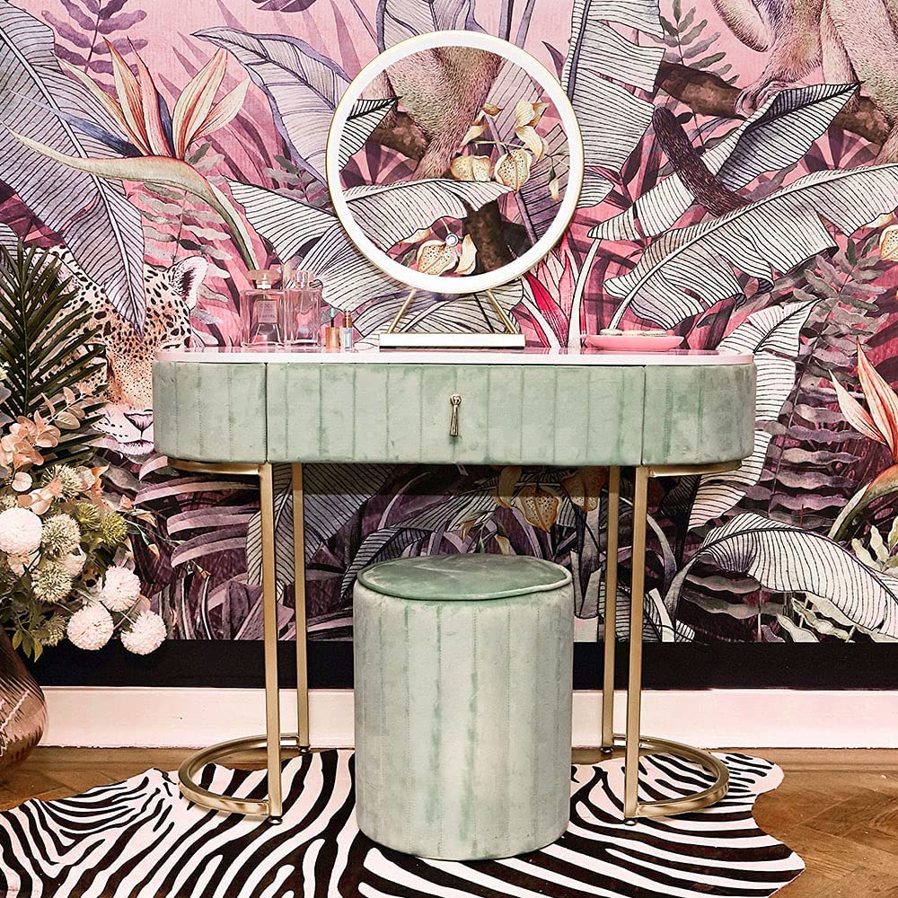 【Furniture】Velvet Dressing Table with LED Light Mirror Touch Sensor 1 Drawer Stool Set Bedroom Modern Dresser