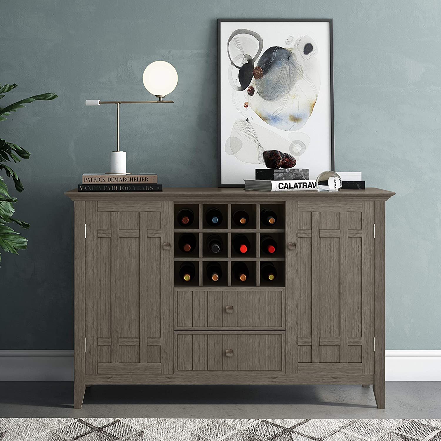 【Furniture】Solid Pine Wood 54 inch Rustic Sideboard Buffet Credenza in Dark Tobacco Brown