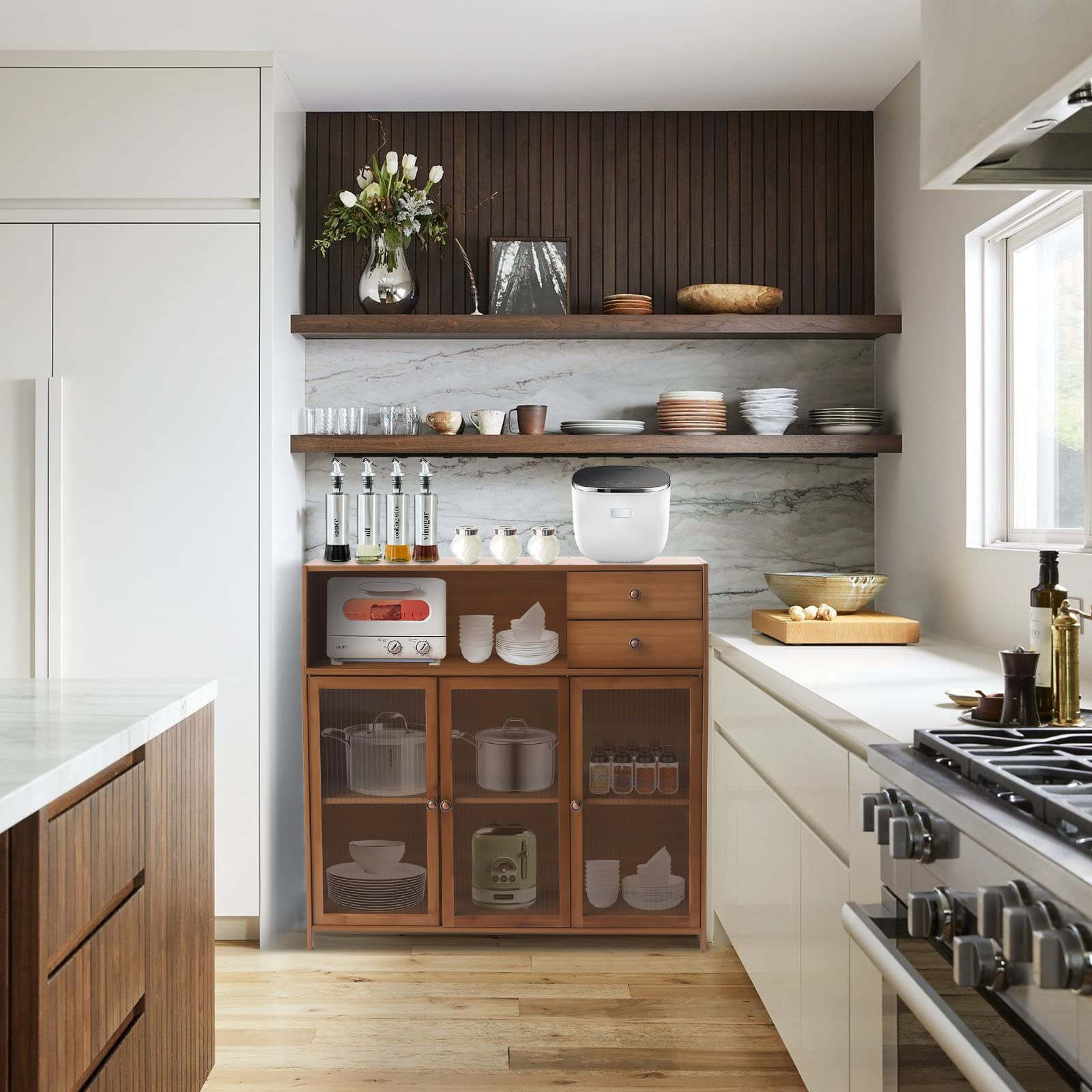 【Furniture】Bellemave Low Loft Beds with 3 Drawers Twin Loft Bed Frame with Cabinet & Bedside Tray Wood Farmhouse Loft Bed