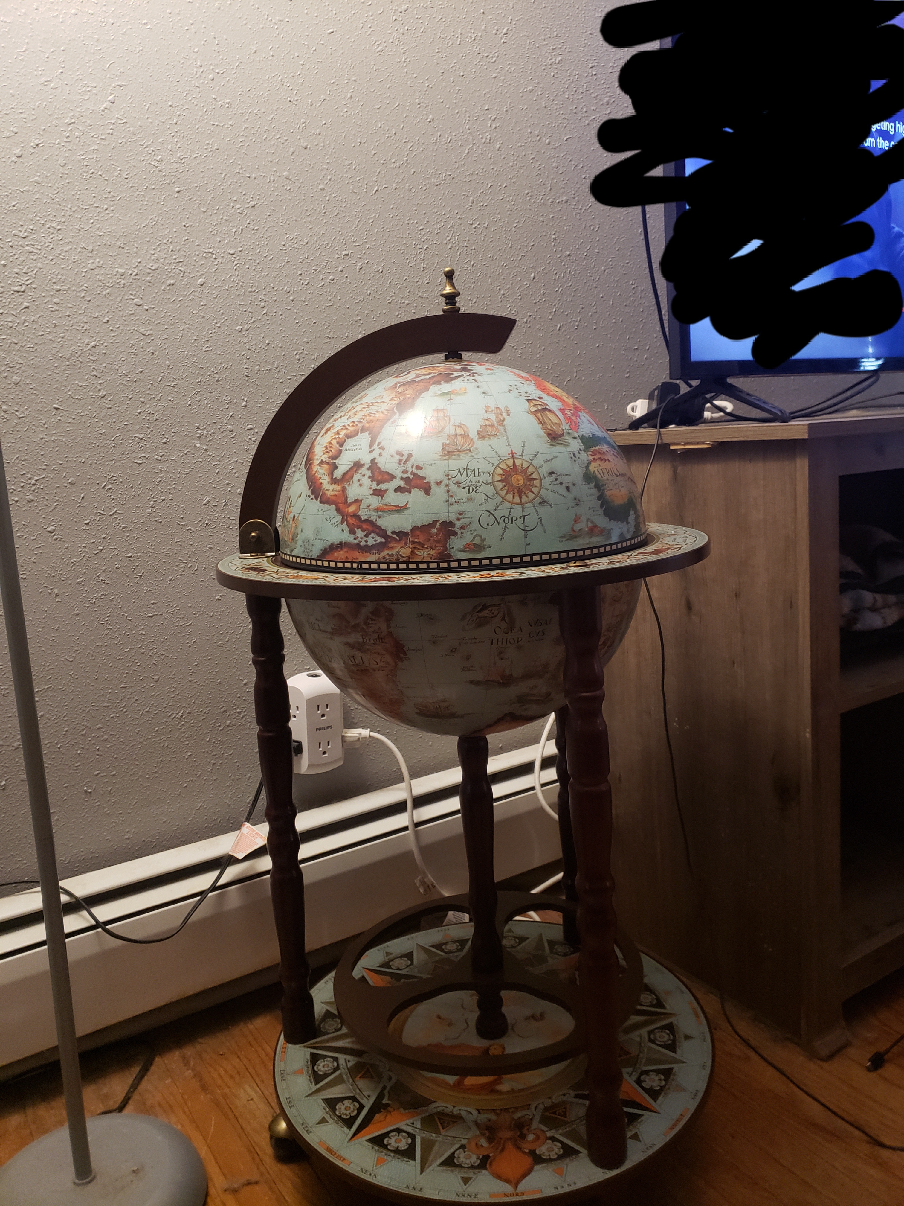 【Furniture】Design Toscano Sixteenth-Century Italian Replica Globe Bar Cart Cabinet on Wheels, 38"