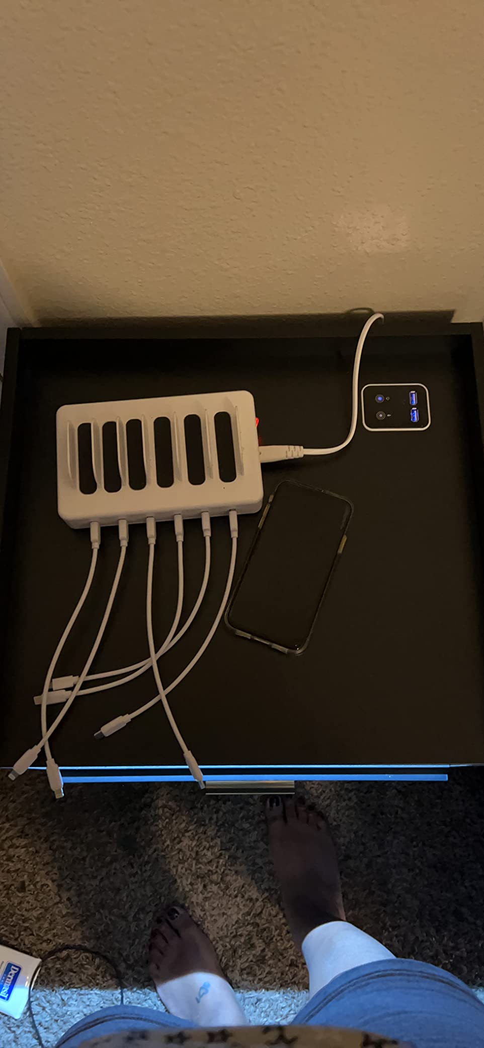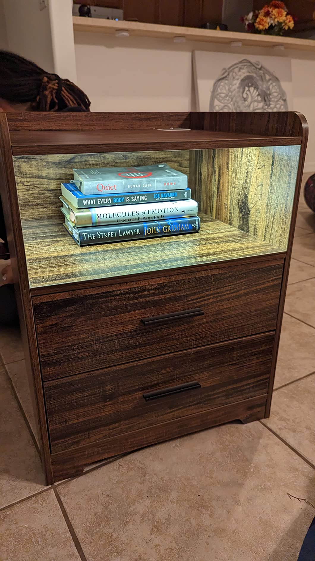 【Furniture】Nightstands Wireless Charging Station and LED Lights, Modern End Side Table with 3 Drawer