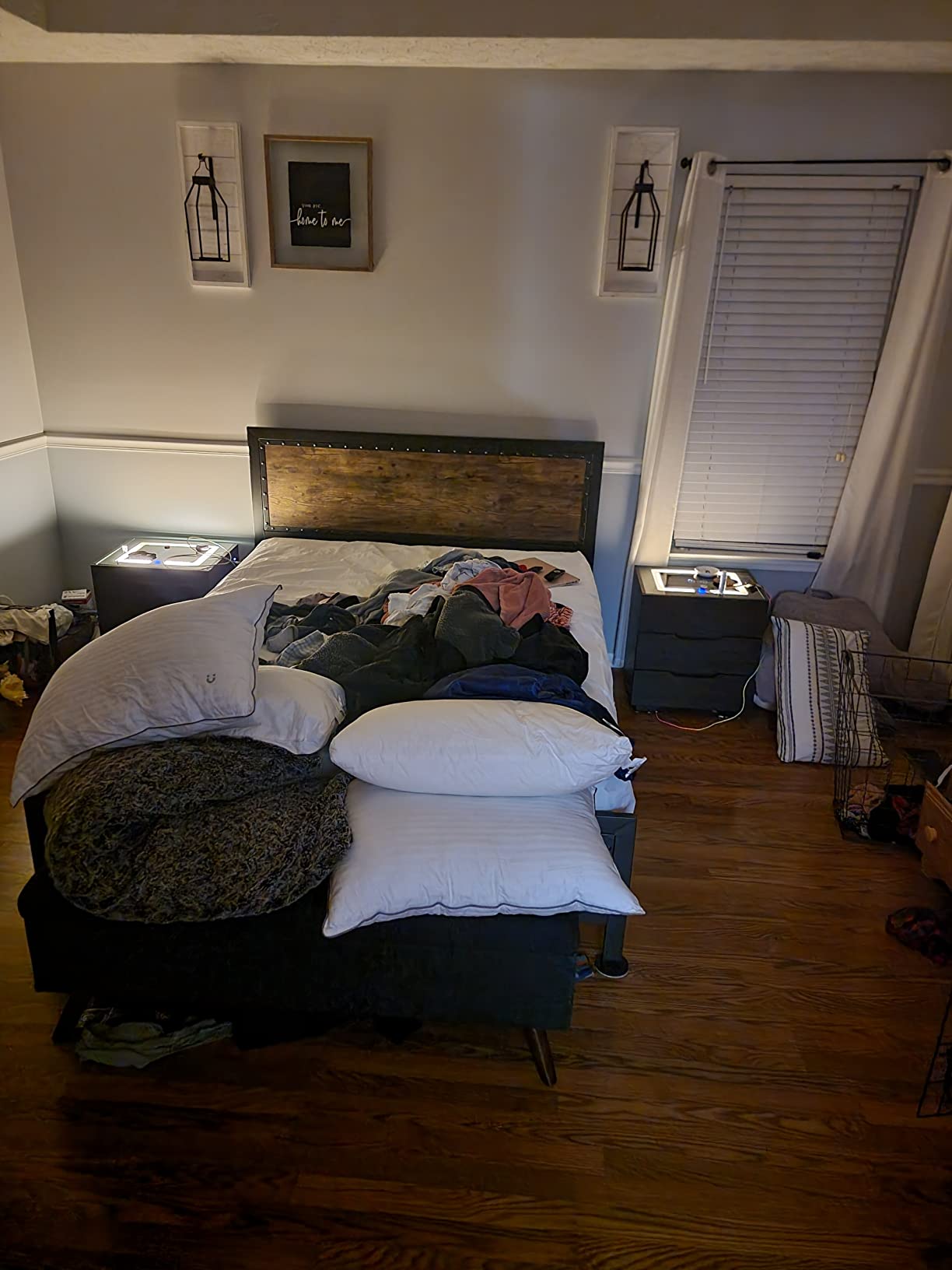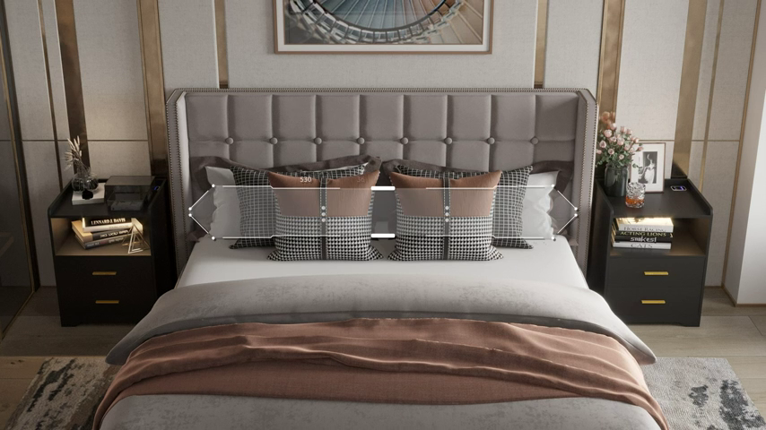 【Furniture】Modern Mid-Century Upholstered Night Stand with 2 Drawers for Bedroom Wood Bedside End Table