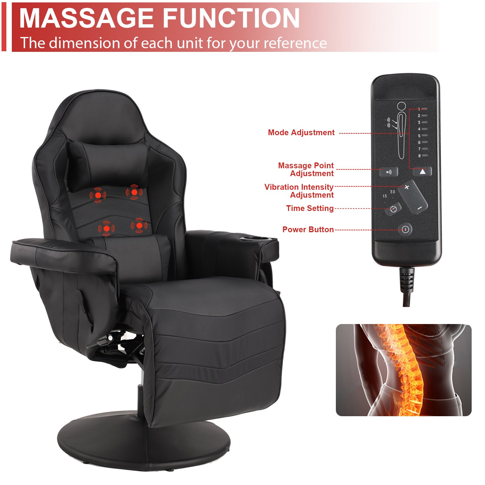 【Furniture】Herrington Massage Video Gaming Recliner Chair - with Cupholder, Headrest, Lumbar Support, Footrest