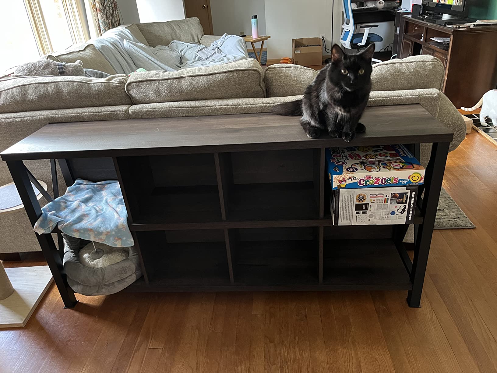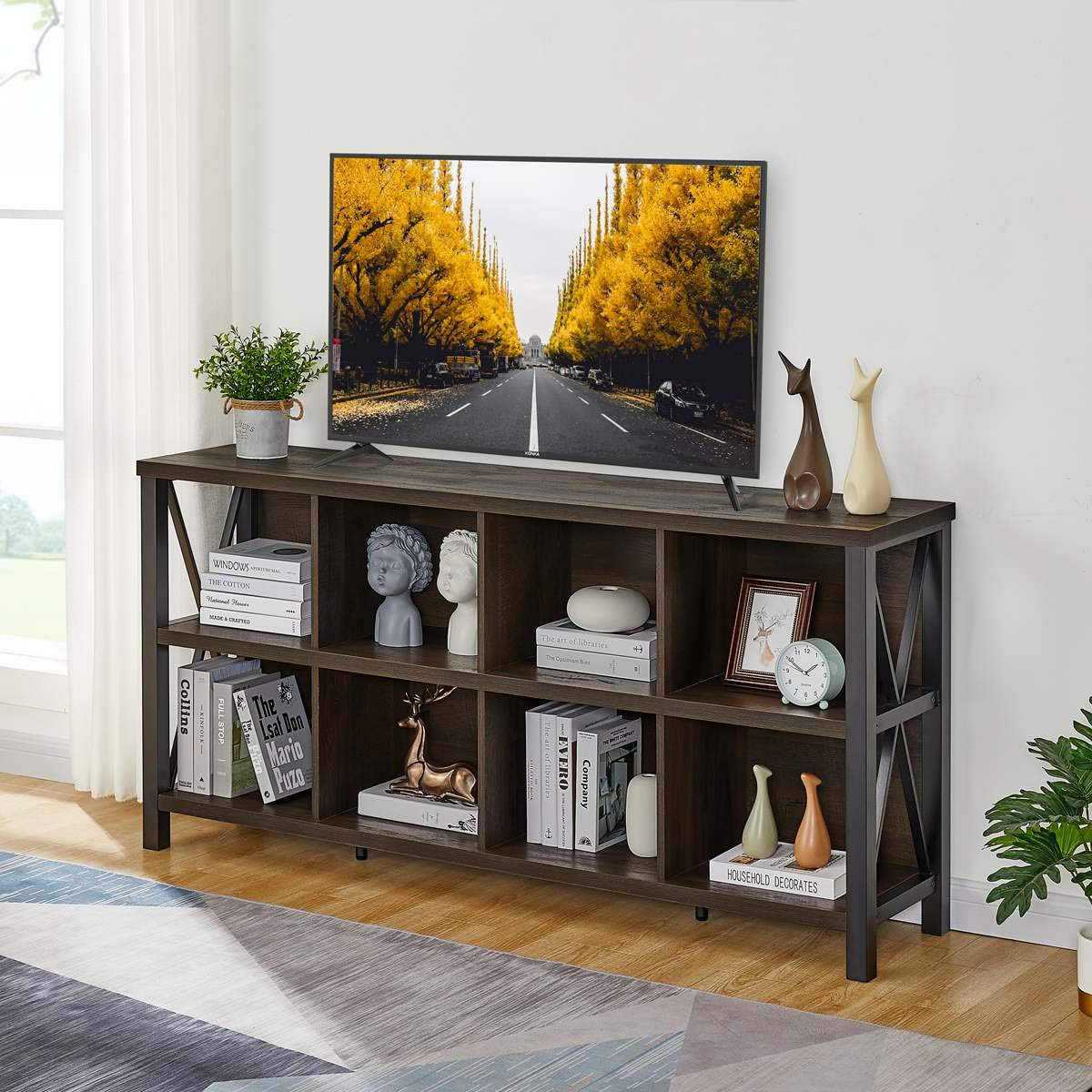 【Furniture】8 Cube Storage Organizer Bookshelf, Rustic Wood Cubby Bookcase, Industrial Horizontal Long Shelf