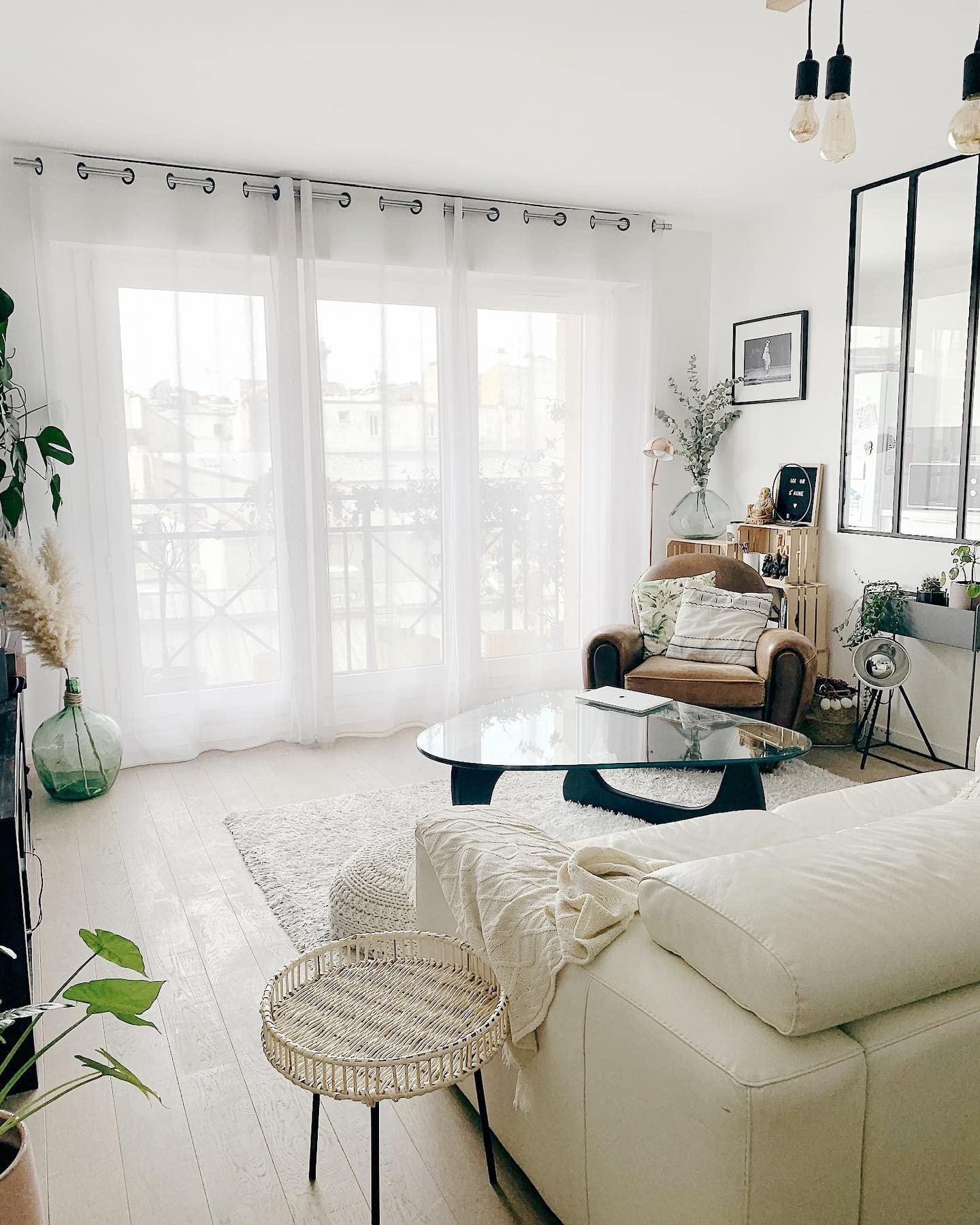【Furniture】Noguchi Table Triangle Glass Coffee Table Vintage Glass End Table, Solid Wood Base & Glass Top
