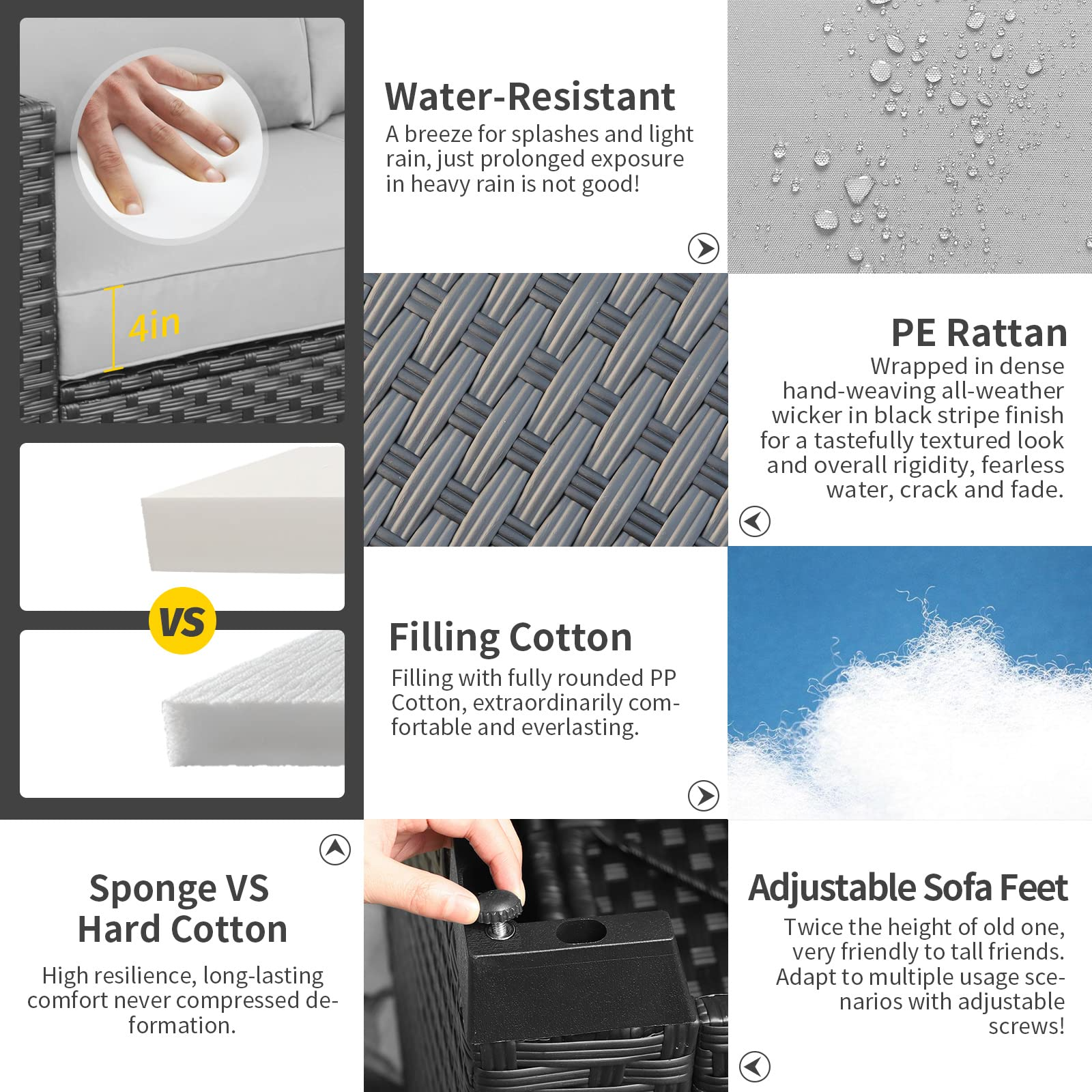 【Furniture】Patio Wicker Furniture Set 7 Pcs Outdoor PE Rattan Conversation Couch Sectional Chair Sofa Set