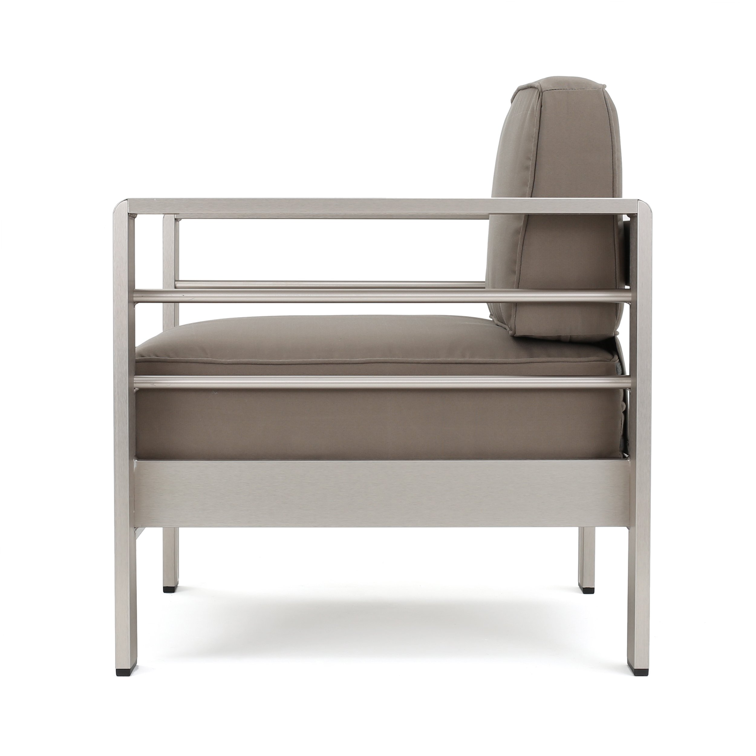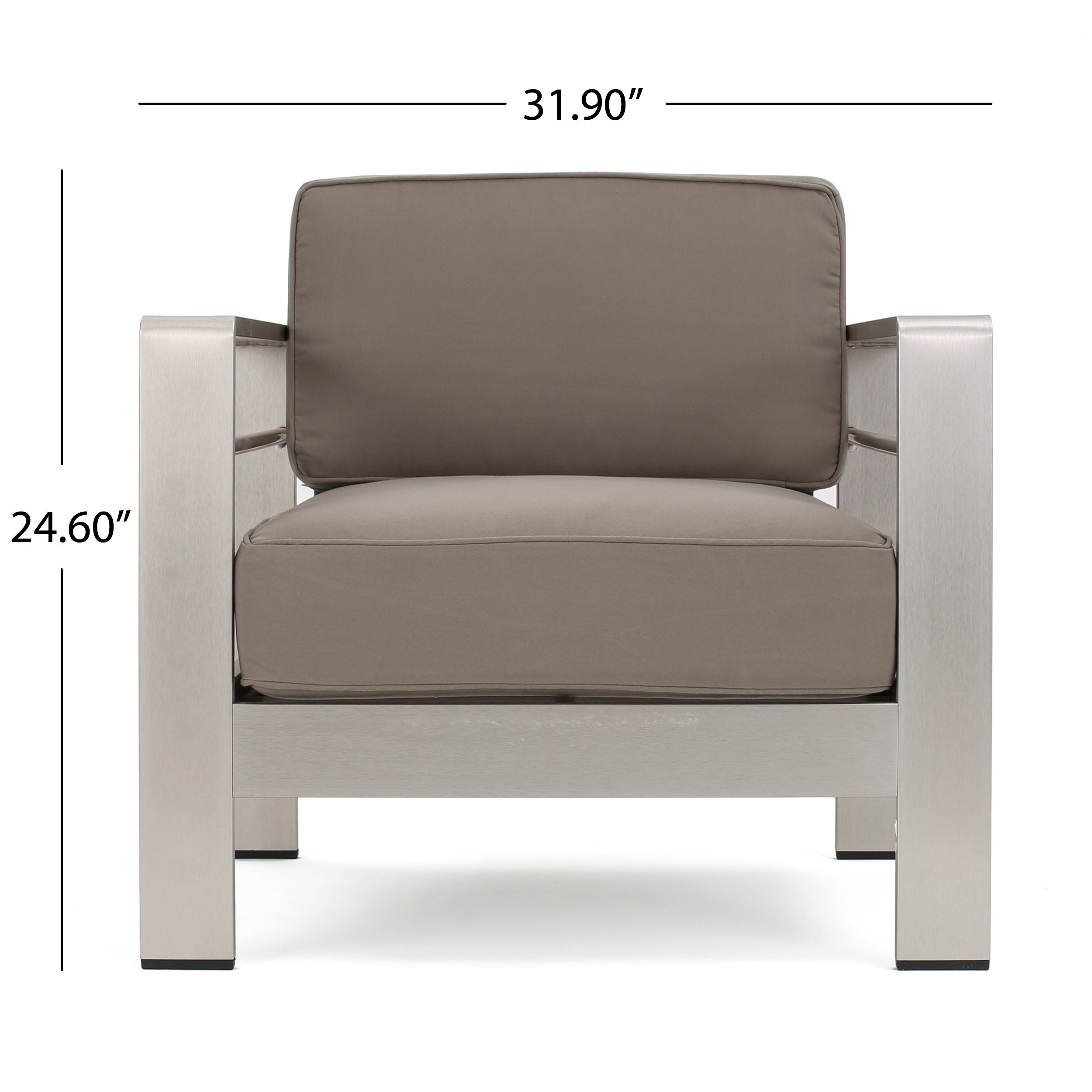 【Furniture】Cape Coral Outdoor Set of Club Chairs with 3 Seater Loveseat and Firepit, 4-Pcs Set
