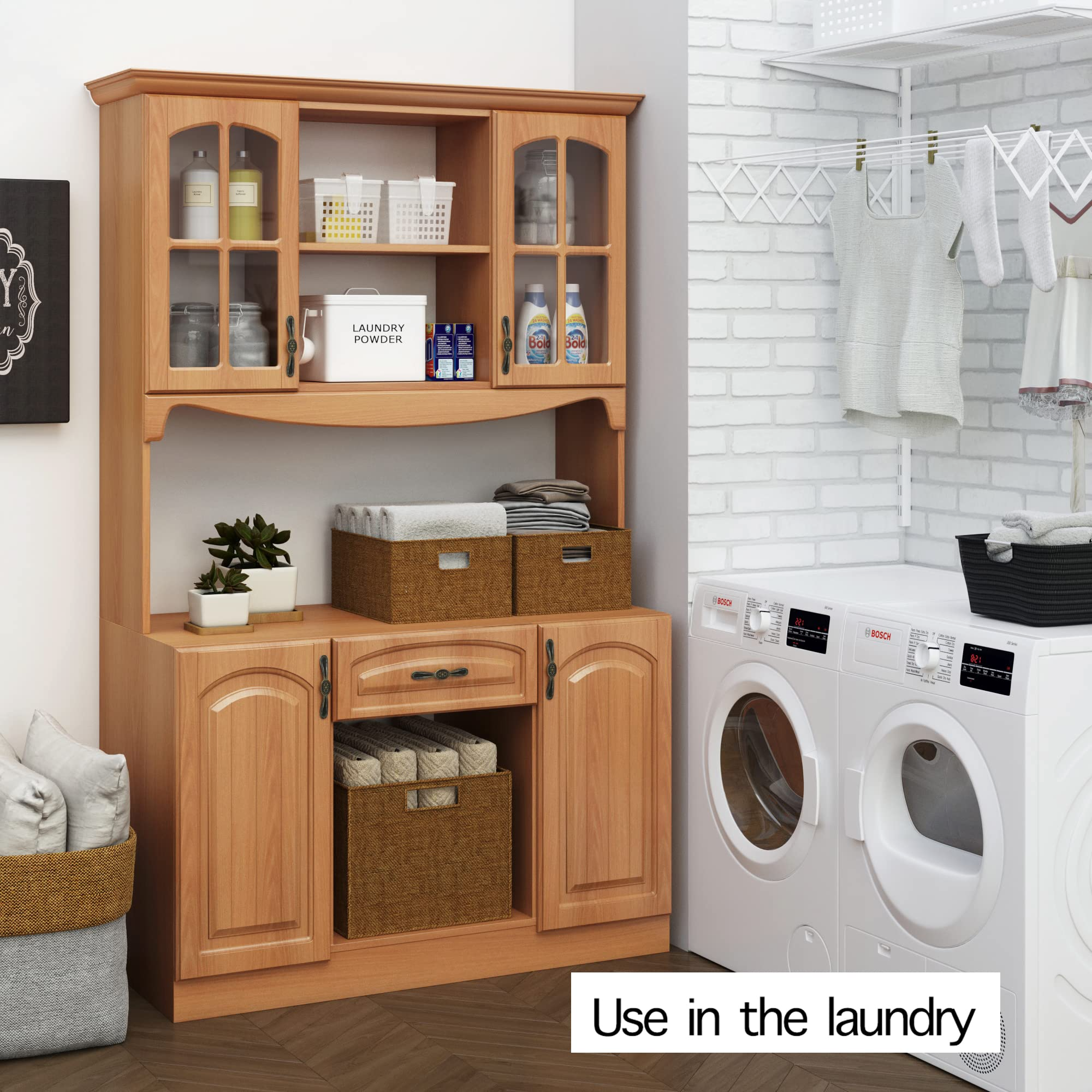 【Furniture】73" Pantry Buffet White Buffet with Wine Rack Drawer & Hutch (72.4"x40.5"x17.7", Cherry)