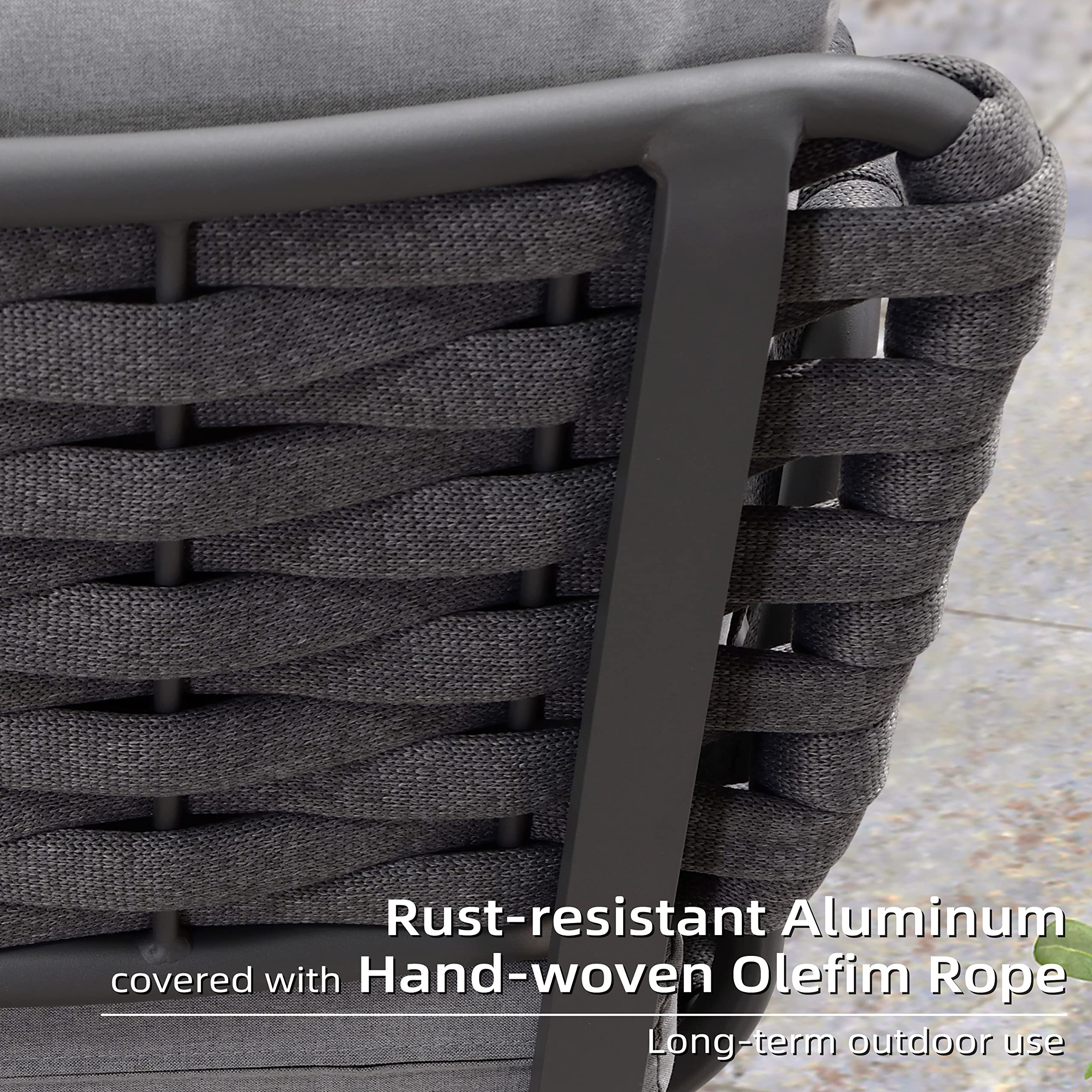 【Furniture】Patio Conversation Set 4 Pcs Aluminum Frame Rope Outdoor Furniture with Coffee Table & Cushions